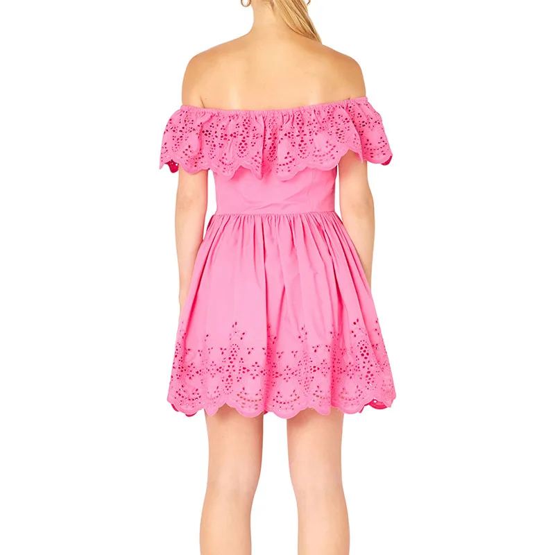 Lady Casual Dress Off the Shoulder Short Sleeve Tiered Eyelet Lace Slim Elegant Mini Women's Dresses