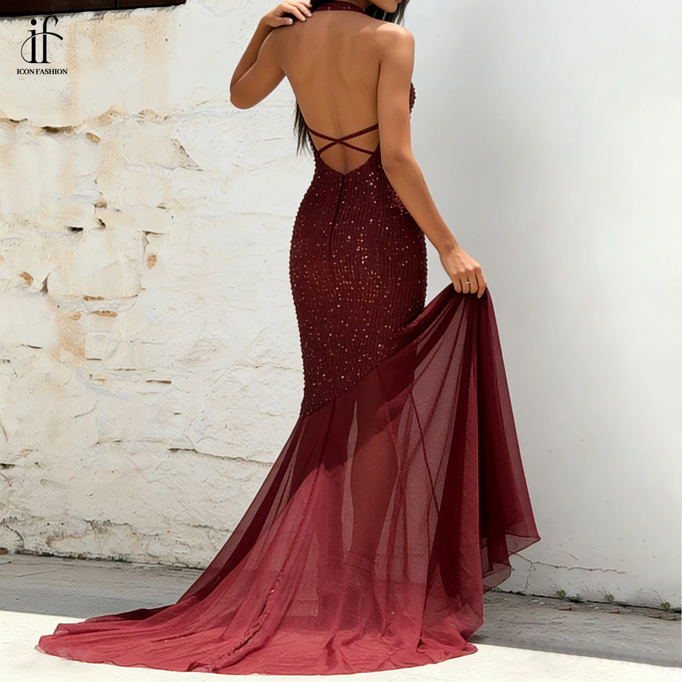 Custom Luxury Women Long Evening Dress Manufacturer Ladies Formal Party Sexy Dress Mesh Splicing Hem Sequin Vestidos