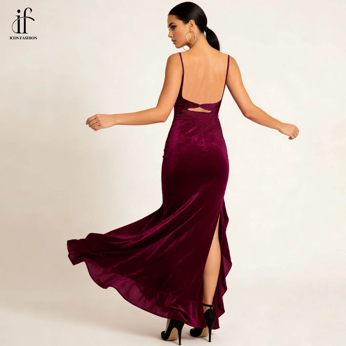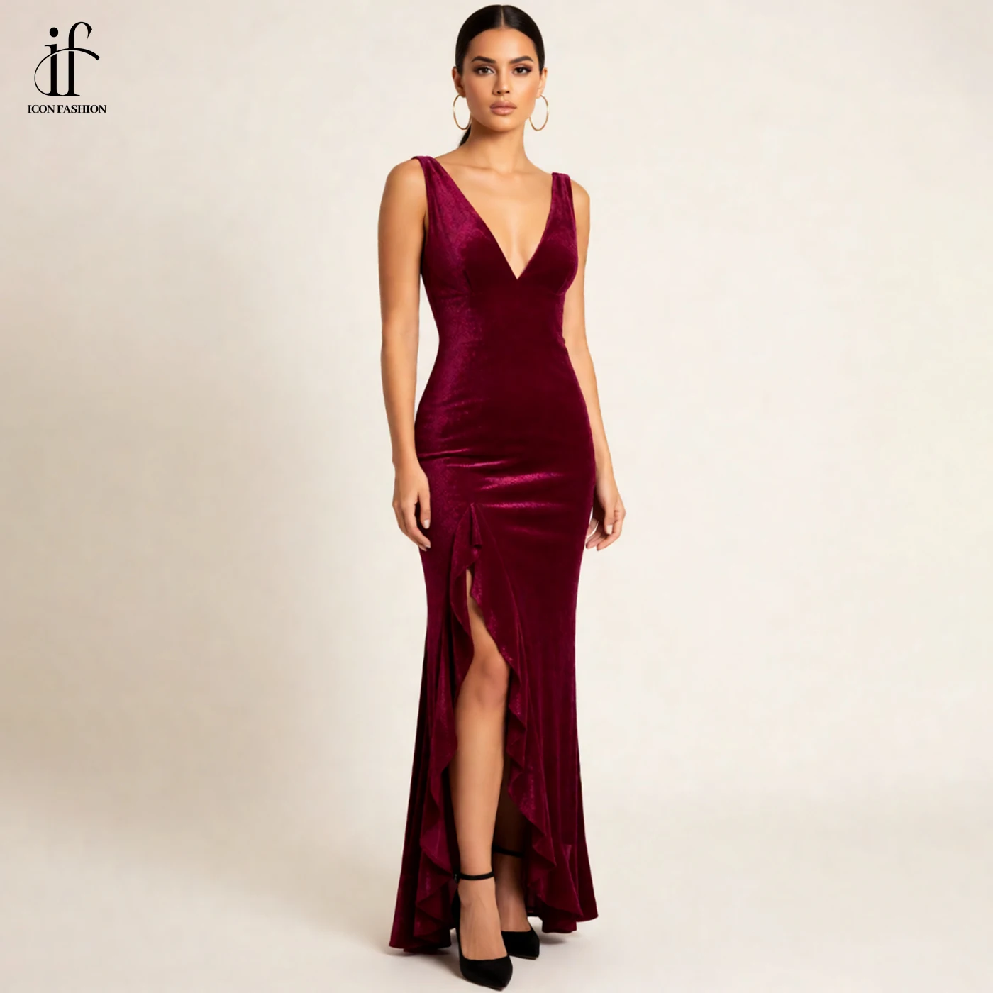 Sleeveless Floor Length Velvet Gown Evening Dress Manufacturer Deep V Neckline Backless High Slit