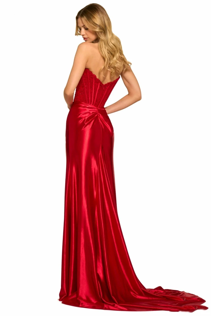ZYHT 73903 Gemstone Crystal 3D Flower Decoration Ruched One Shoulder High Slit Long Sleeve Maxi Simple Elegant Evening Dress