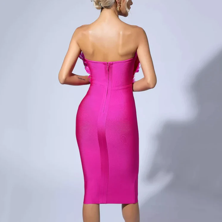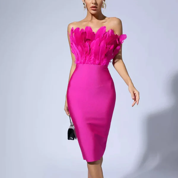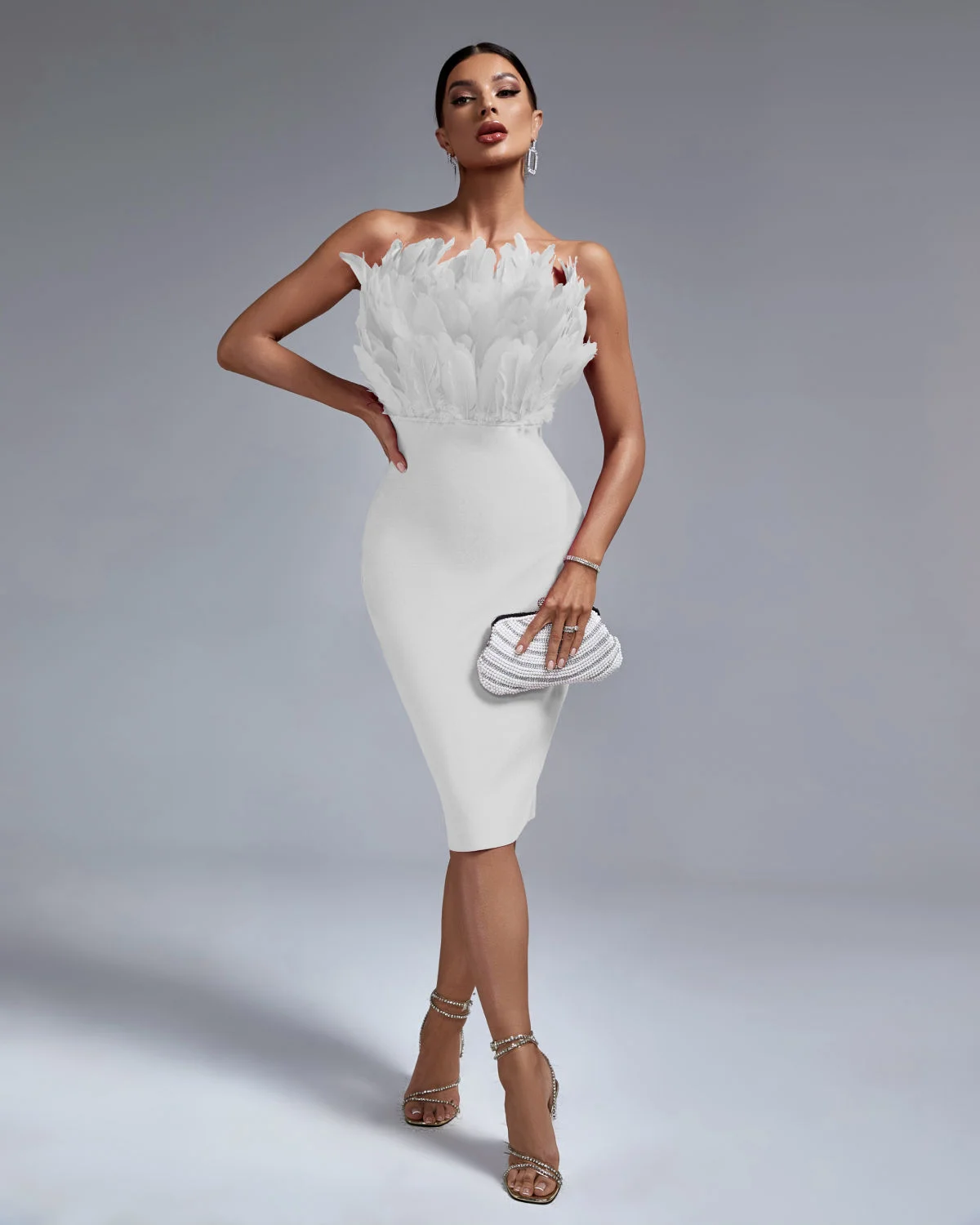 Elegant Backless Sexy Formal Party Dress Women Custom Design High Quality Feather Strapless Knee-Length Bandage Dresses