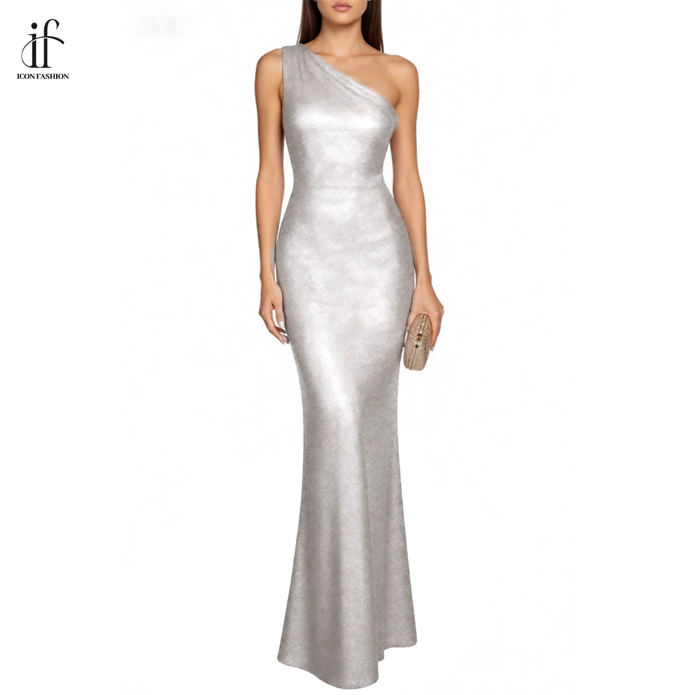 New Fashion Elegant Sequin Evening Gown One-Shoulder High Waist Mermaid Party Dresses Women Custom Clothing Brand