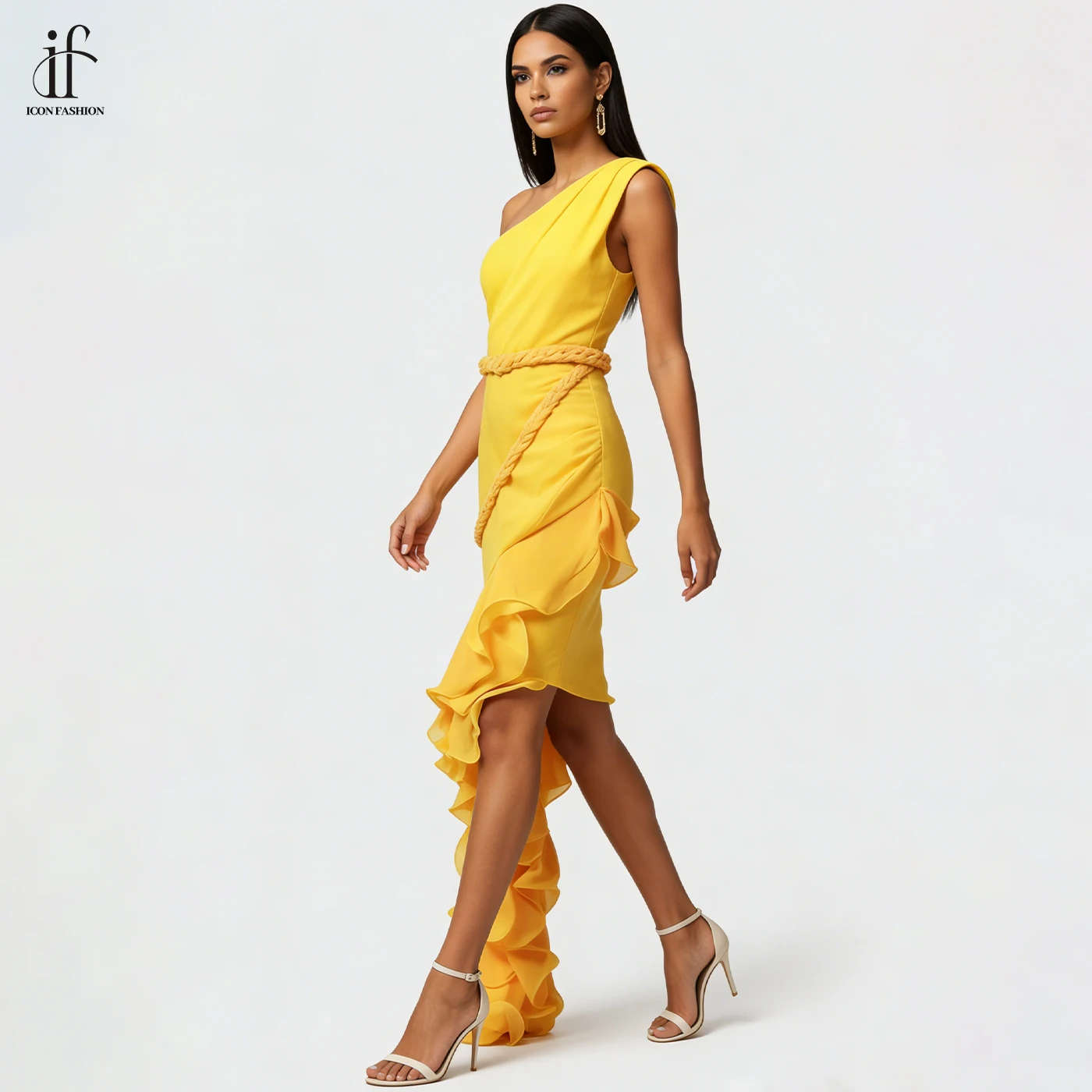 ZYHT 73963 Matte Satin Printed Geometric Pattern Maxi Women Asymmetric One Shoulder Ruched Hem Women Dress