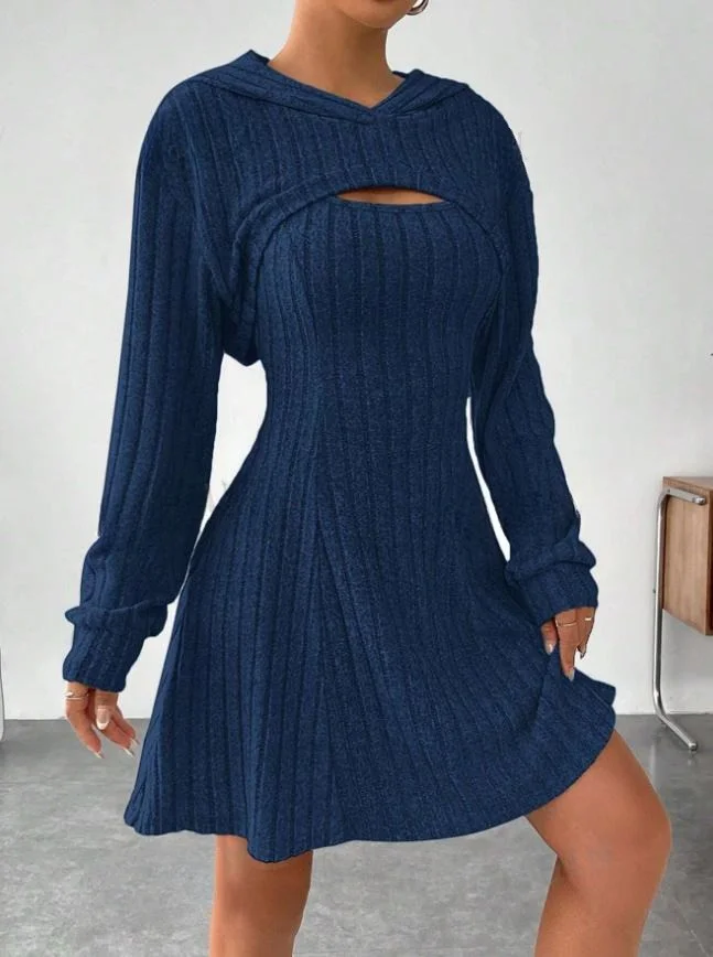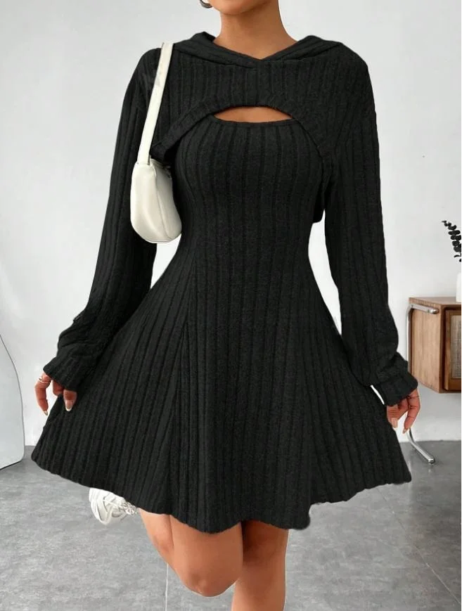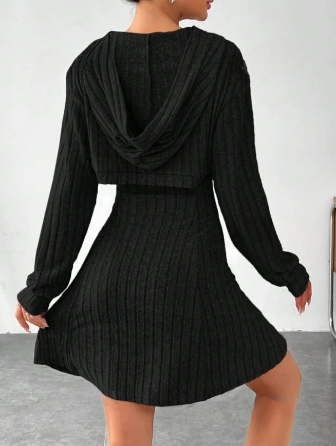 Boutique Wholesale 2026 Autumn New Fashionable Simple Hooded Shawl Elegant Dress Women's Sets