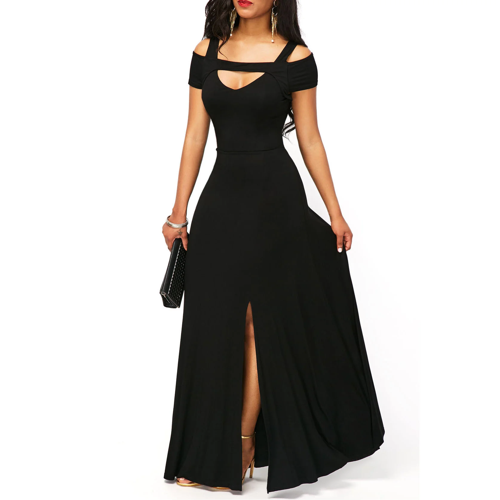 3XL Sexy V-Neck Bodycon Party Dress for Women Cheap Fashionable Black Chiffon Plus Size Casual Solid Pattern Tiered for Spring