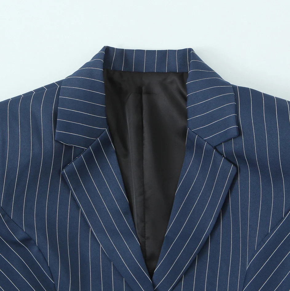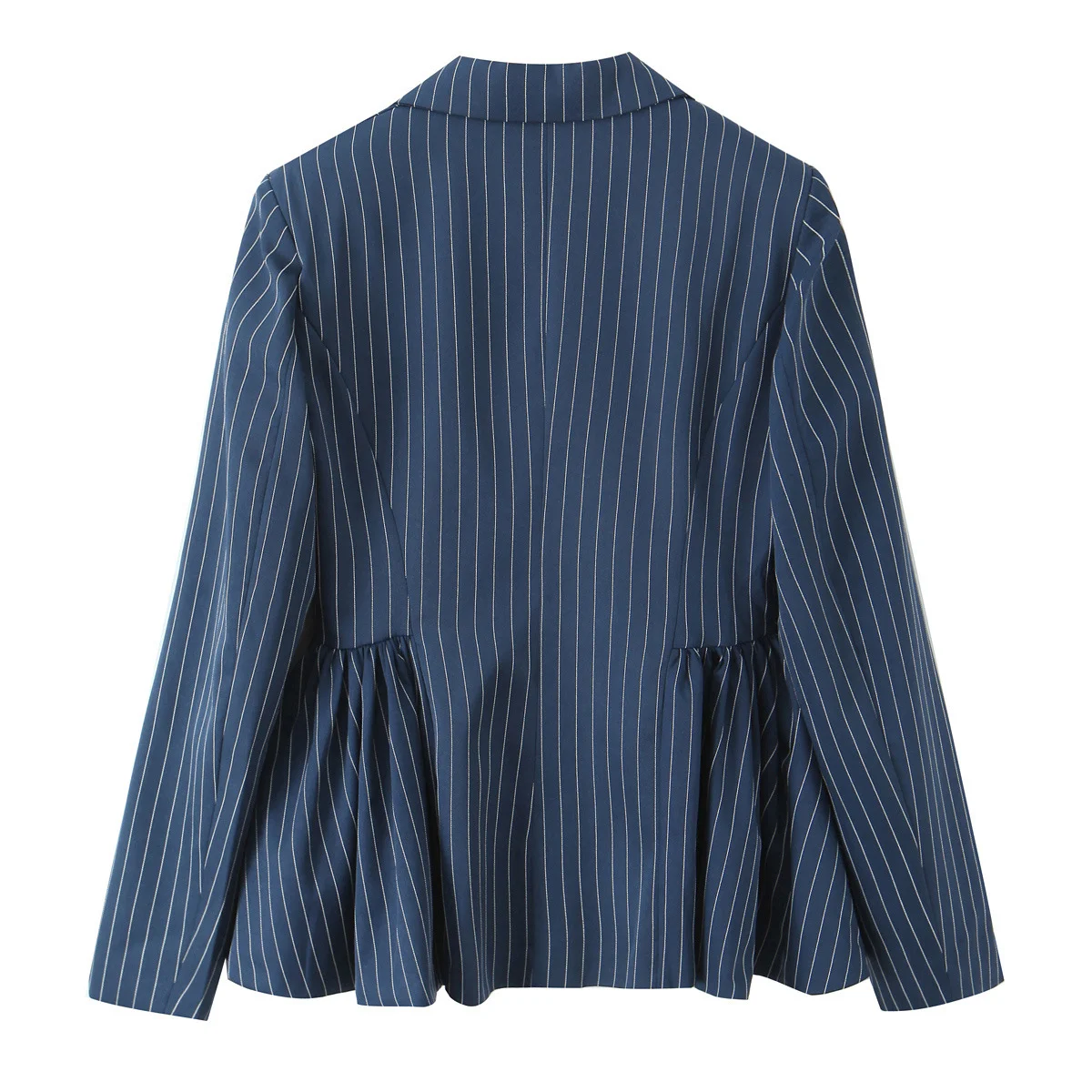 Fashion European American Style Women's Blazer New 2026 Bud Hem Lapel Long Sleeve Striped Breathable Jacket