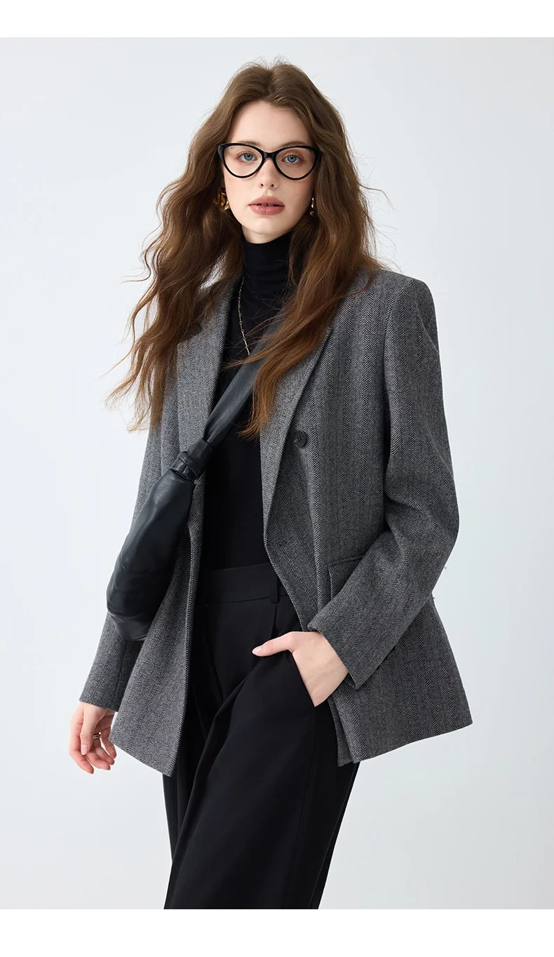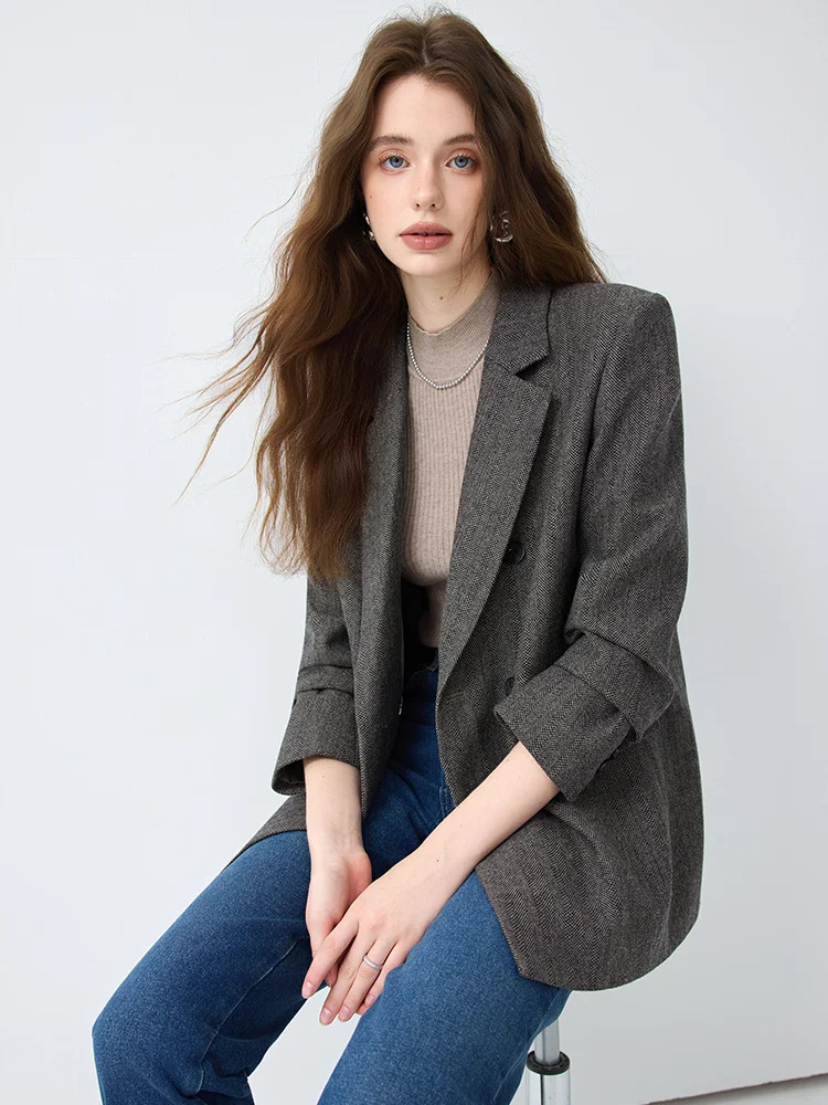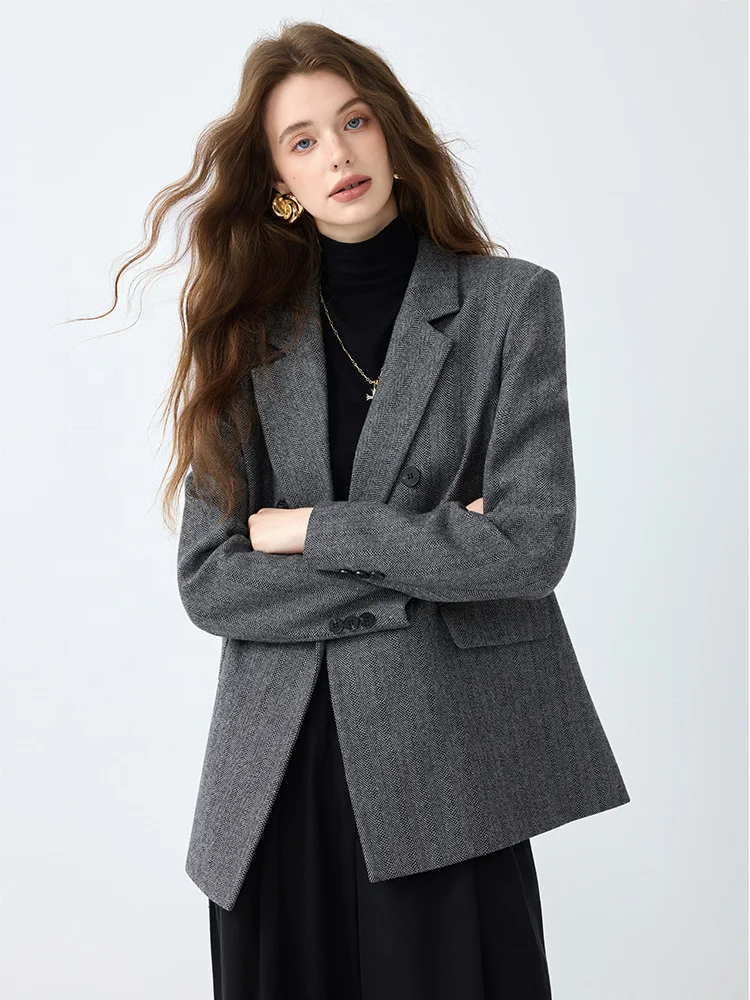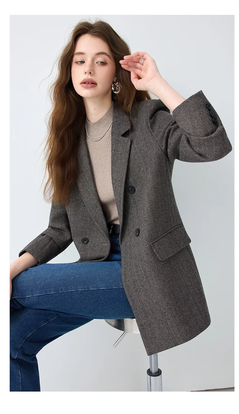 2026 European American Retro Style Casual Jacket Solid Minimalist Women's Breathable Double-Breasted Jacket