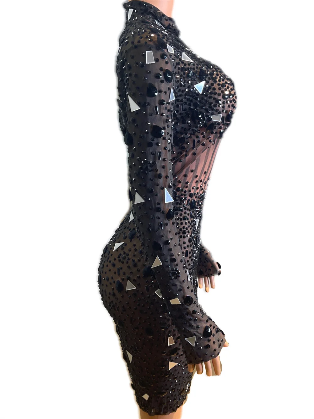 ZYHT 21938 Black Velvet Mini Dress Square Neck Long Puff Sleeves with Pearl Trim & Crystal Dess Flared Scalloped Hem Dresses