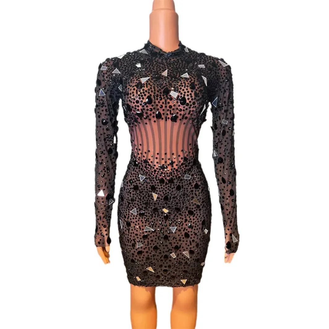 Black Sequined Fur Floor-Length Ball Gown Evening Dresses with Long Sleeves for Party Women