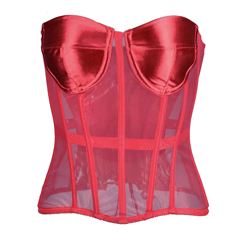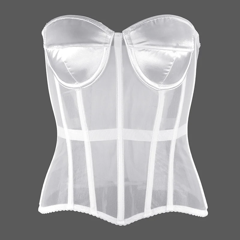 Women's Breathable Mesh Corset Sexy Bustier Waist Slimmer Crop Tops Transparent Overbust Cups Lace Boned Shaping Bodice