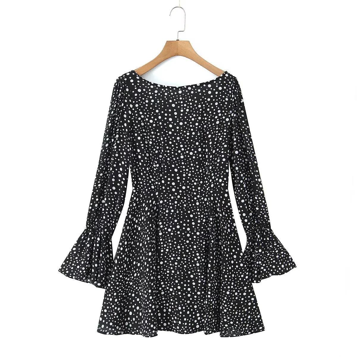 ZYHT 21938 Black Velvet Mini Dress Square Neck Long Puff Sleeves with Pearl Trim & Crystal Dess Flared Scalloped Hem Dresses