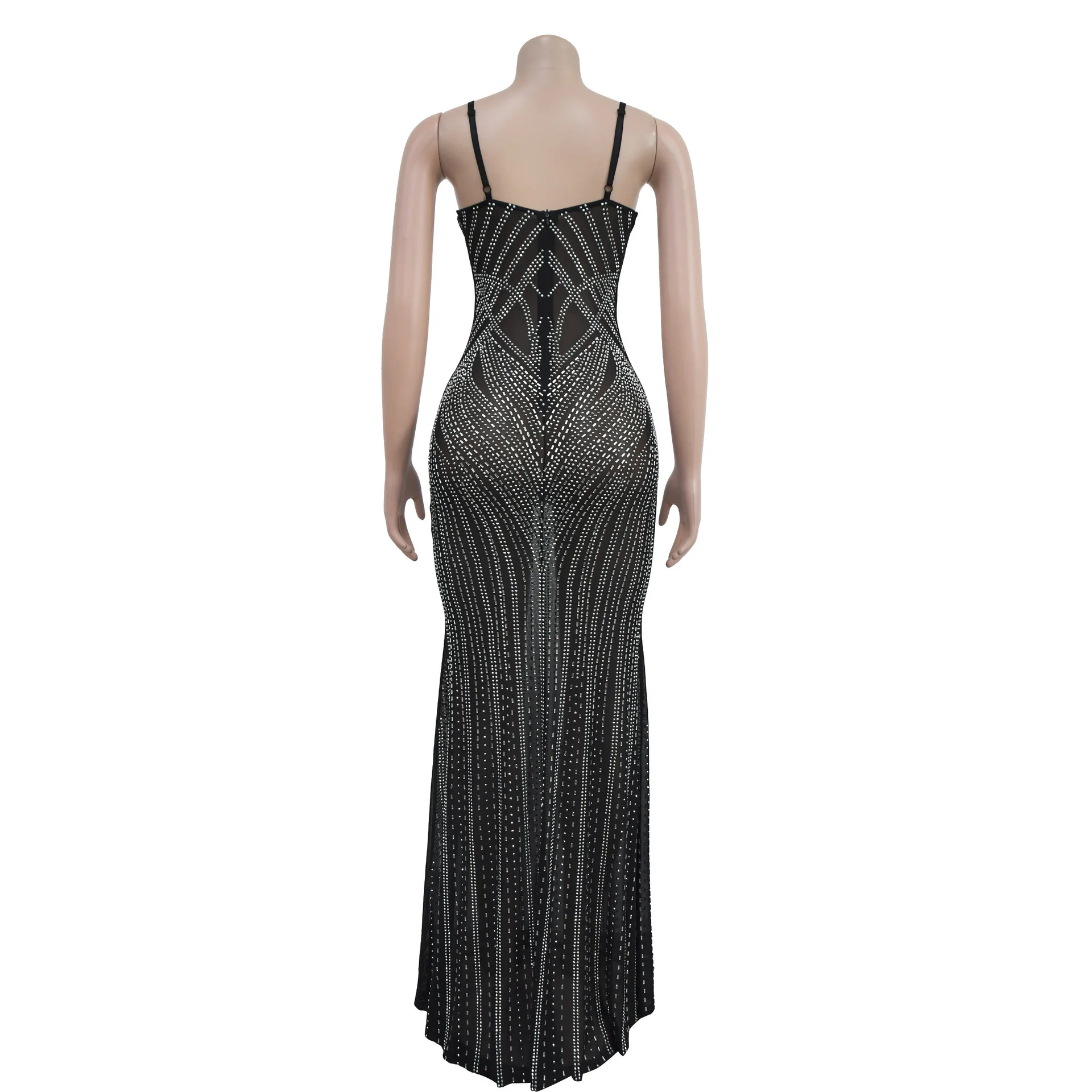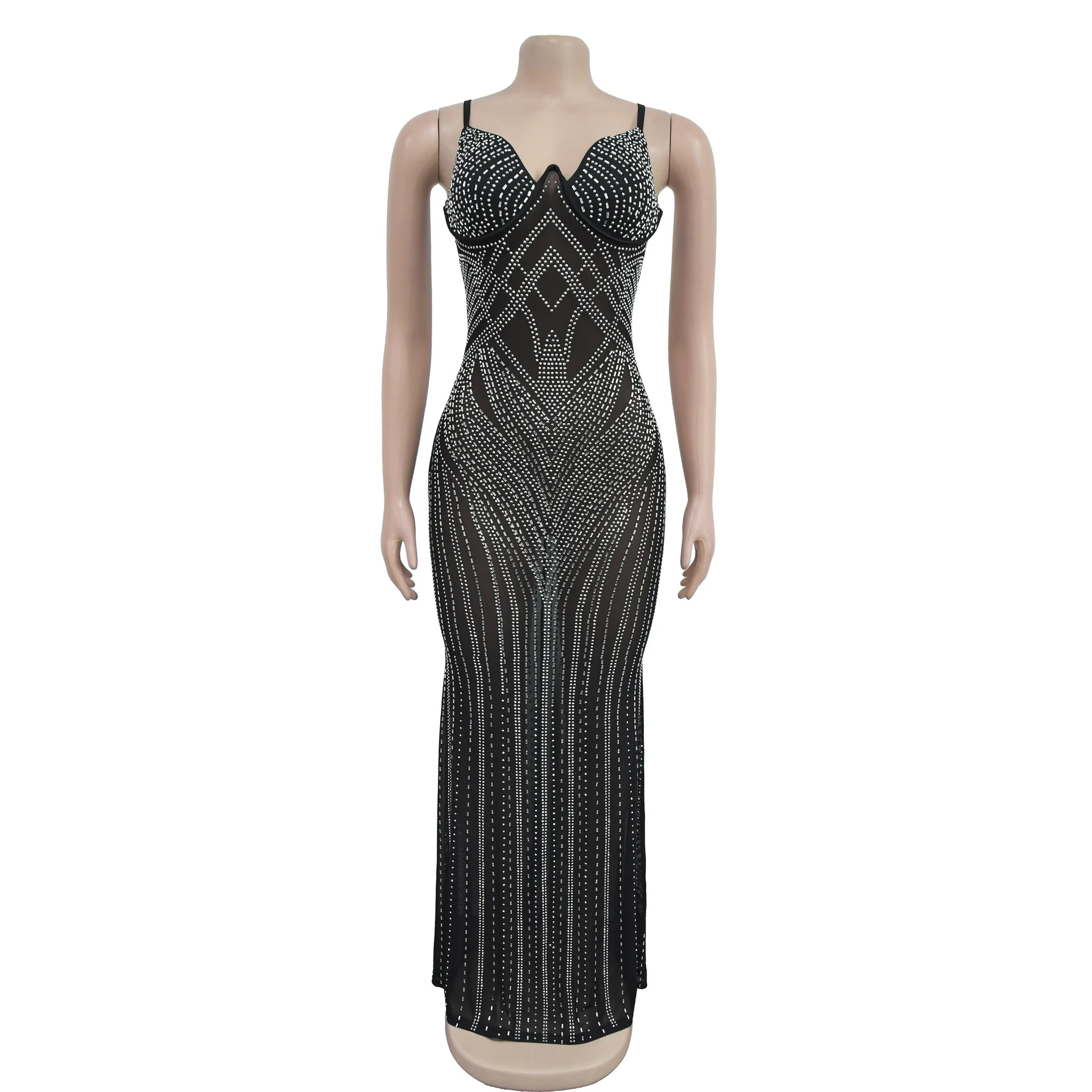 Women's Fashion Slim Fit Dress Sleeveless Sheath Rhinestone Strap Sequined Chic Party Summer Chiffon Natural Cashmere