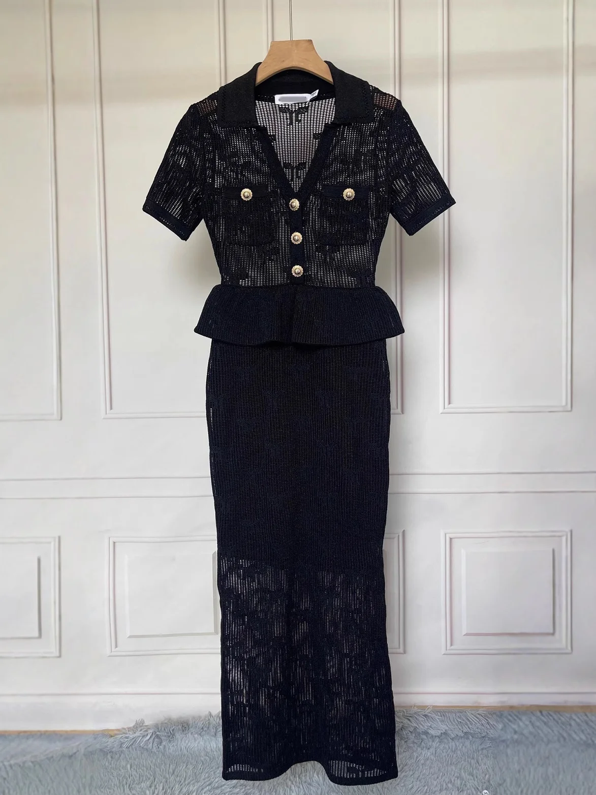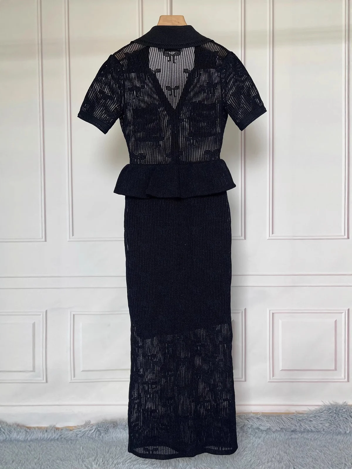 New Arrivals Empire Waist Solid Floor-Length Pencil Silhouette Hollow Short Sleeve Embroidered Spring Autumn Winter