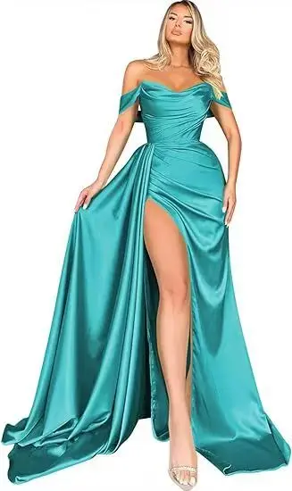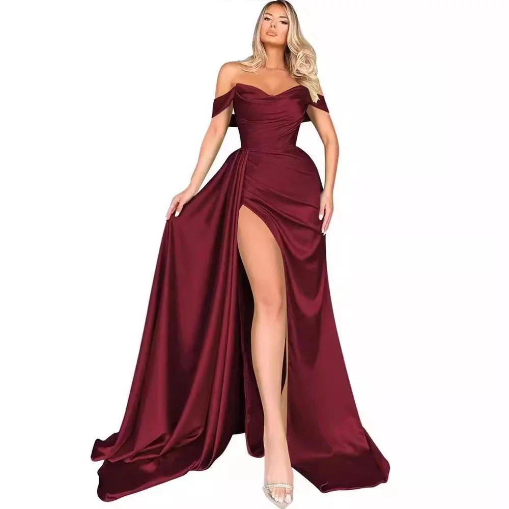 Solid Color Short-Sleeve Prom Dress for Women Sexy Off-Shoulder Ball Gowns for Formal Dinner Parties Evening Dresses