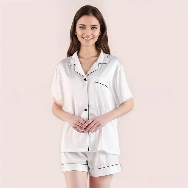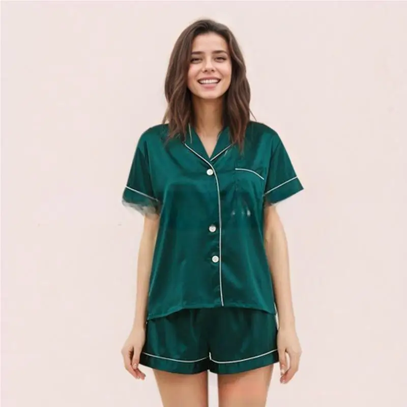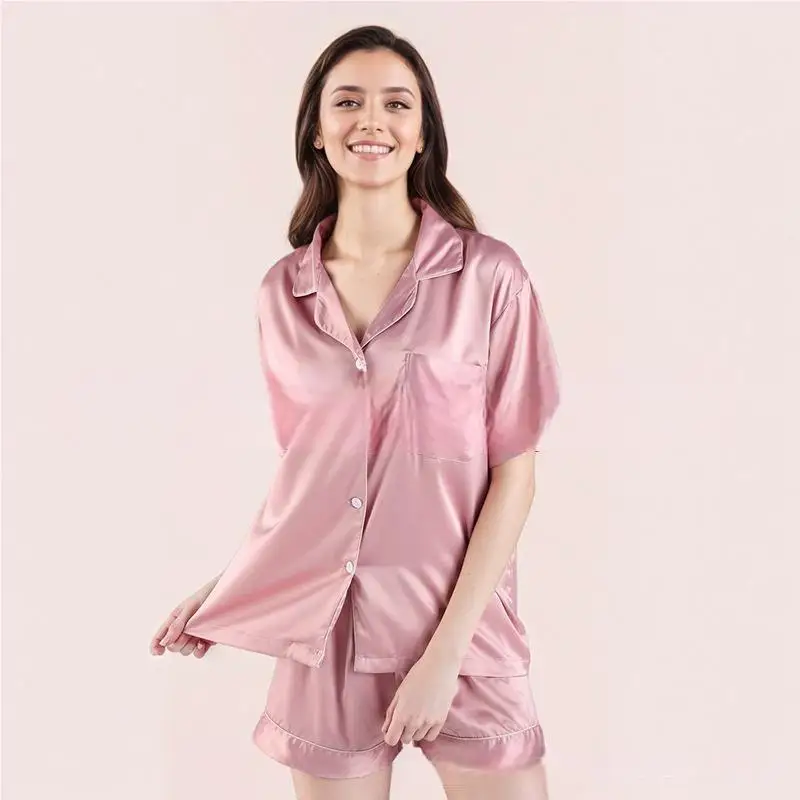 Womens Silk Satin Pajamas Set Two-piece Pj Sets Sleepwear Loungewear Button-Down Pj Sets Night Dress for Women