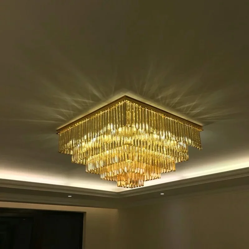 Wedding Hall Chandelier Hotel Hanging Pendant Light Customized Amber Crystal Chandelier Lighting for Lobby
