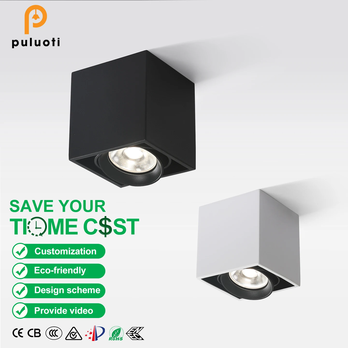 Modern 18W H125mm Spot Lights Aluminum COB Ceiling Light Black Square Surface Mounted 1-Head 3000K 4000K 6000K Led Spotlight
