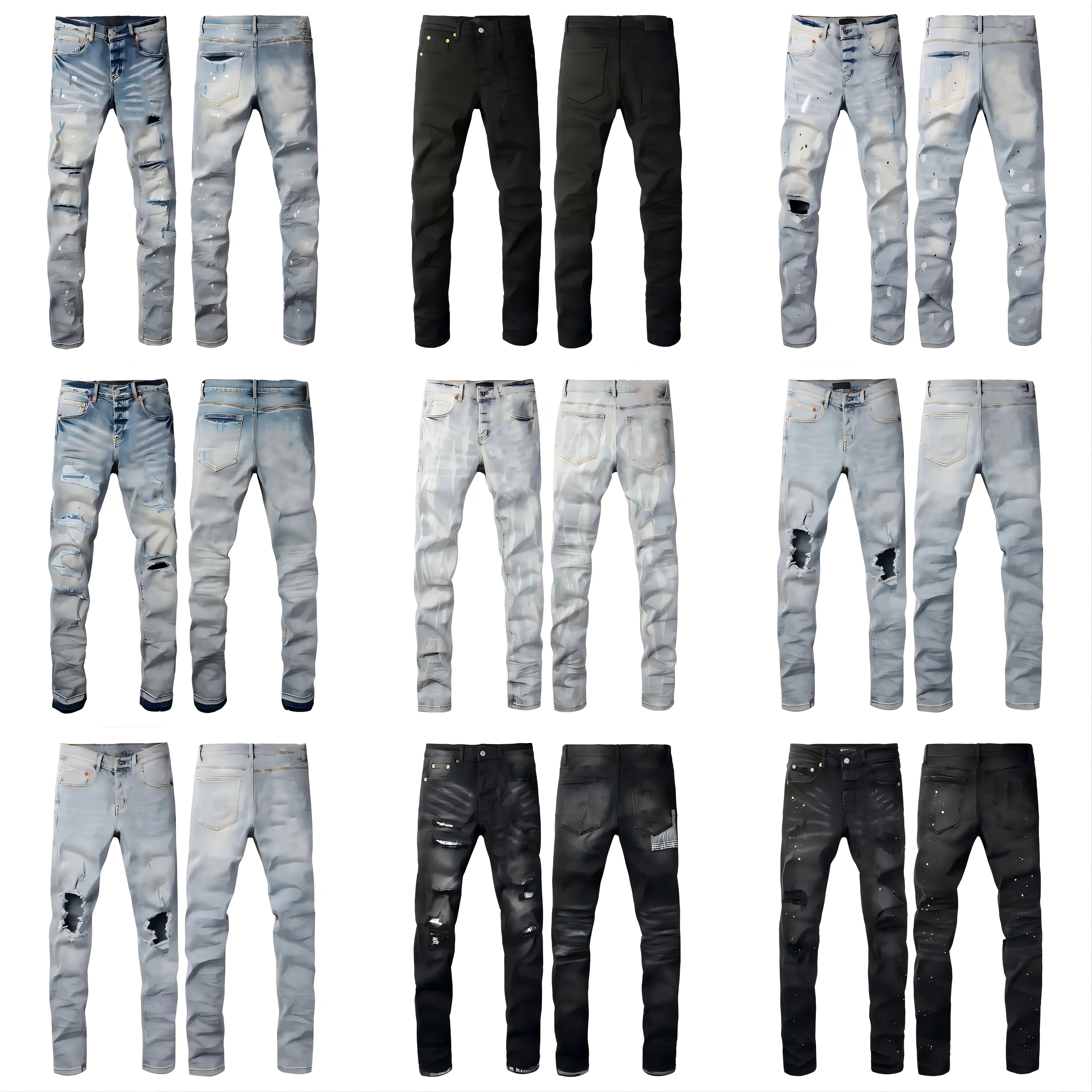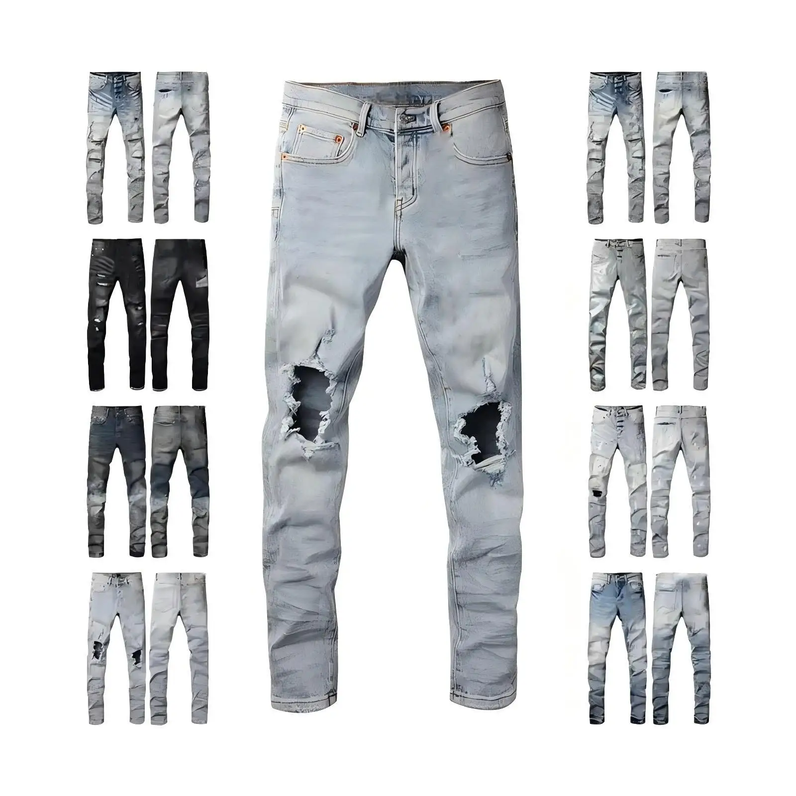 Wholesale Cotton Jeans Denim Shorts Print Streetwear Distressed Ripped Slim Fit Moustache Effect Men's Denim Jeans