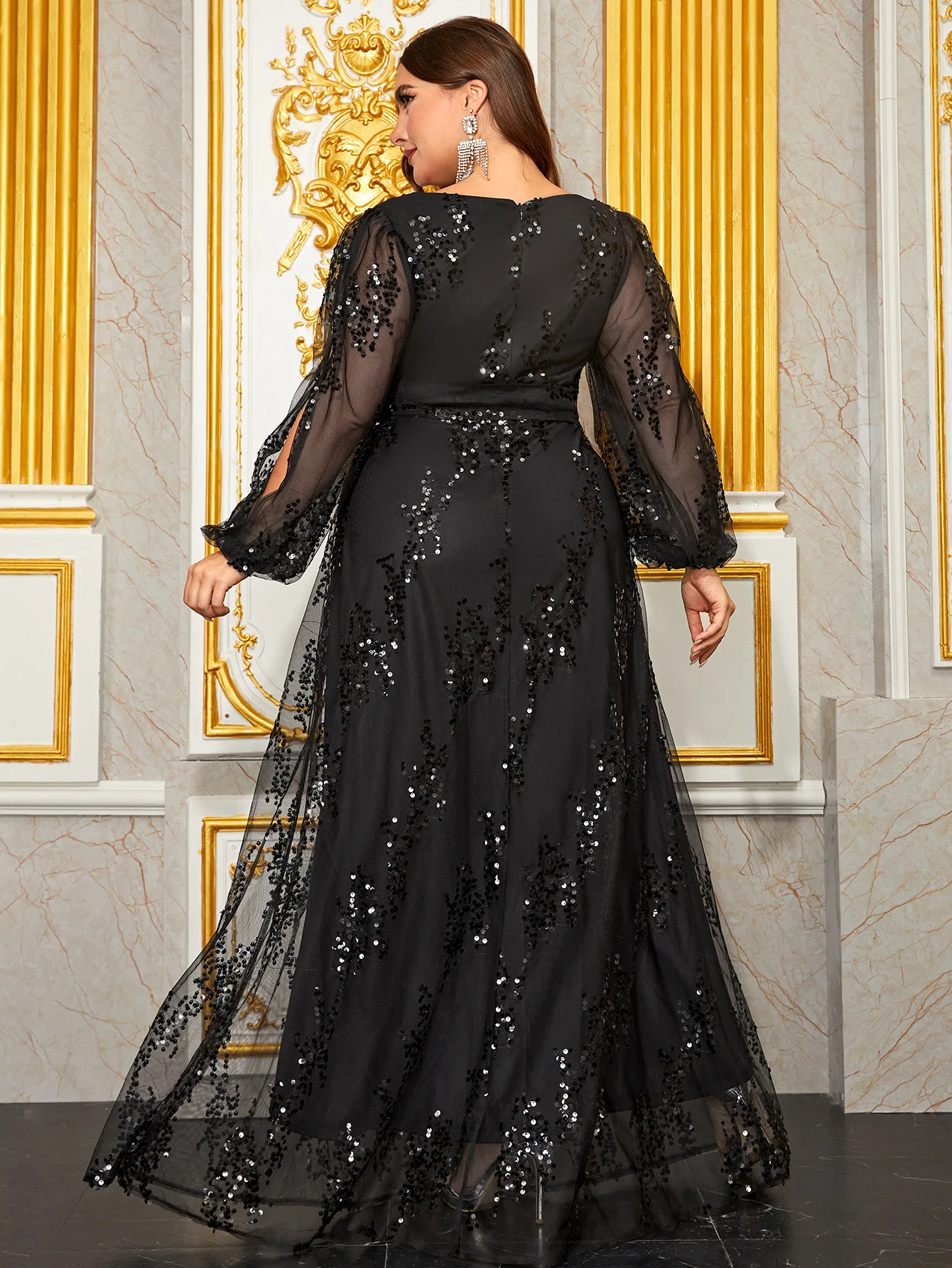 Women Sexy Temperament Long Sleeve V-neck Black Long Evening Prom Dresses