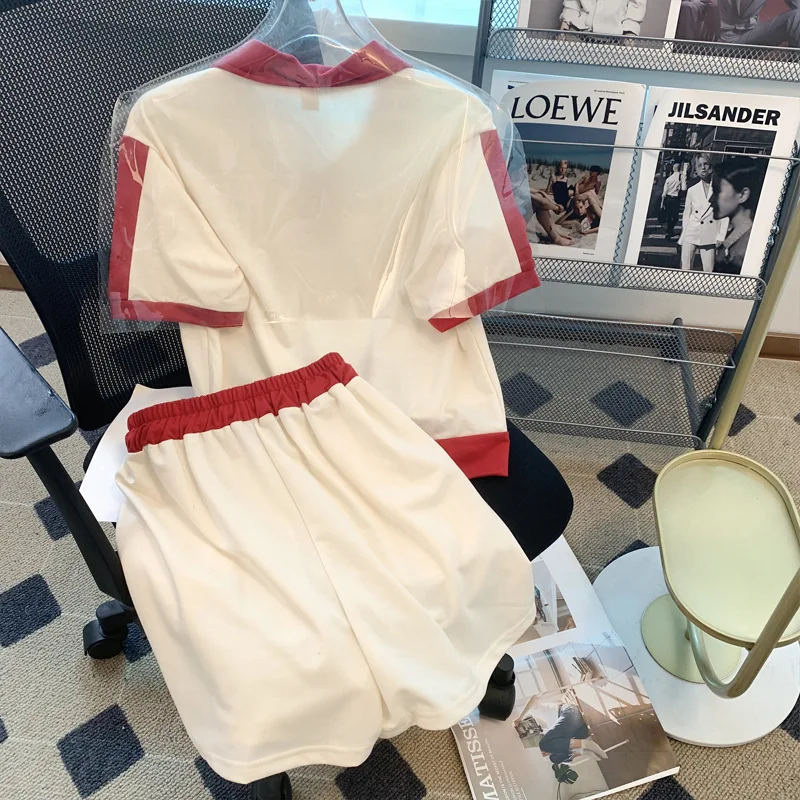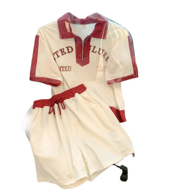 Women's Casual Sports Suit Women's Summer Embroidered POLO Collar Zipper Short-sleeved Shorts Two-piece Fashion Set
