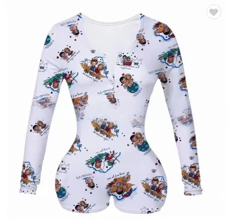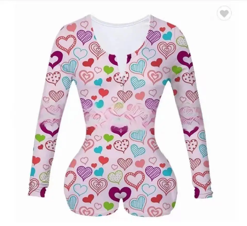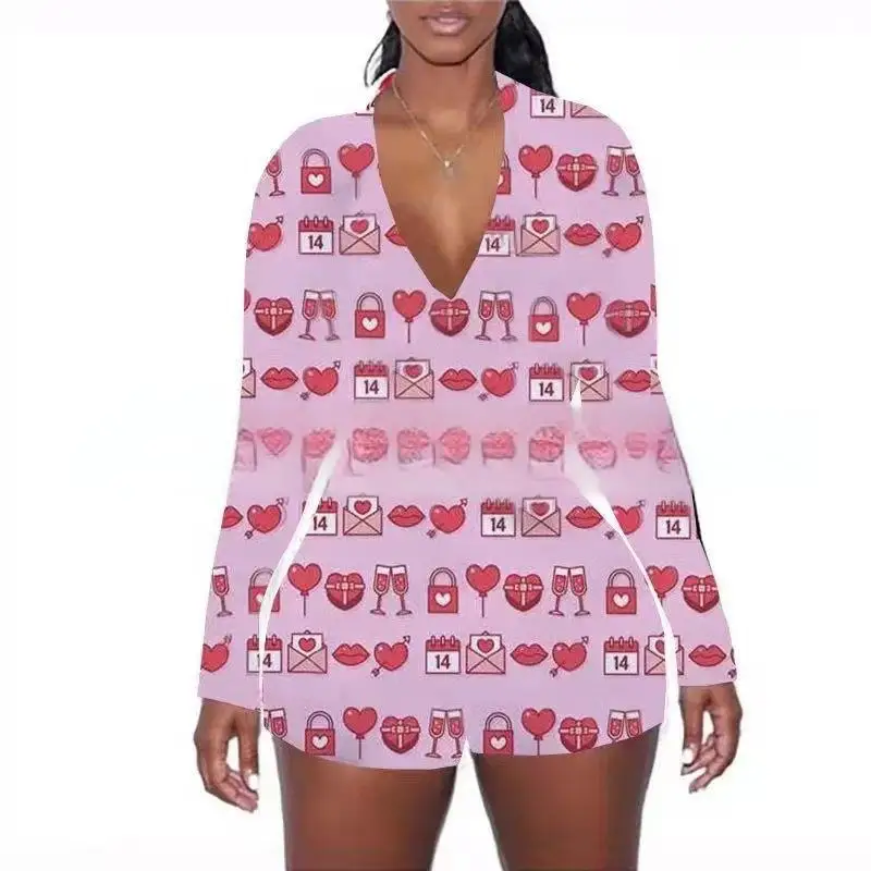 Fashion Valentines Day Pajamas Loungewear Shorts Pajamas Floral Long Sleeve One Piece Lounge Wear Women Sleepwear Sexy