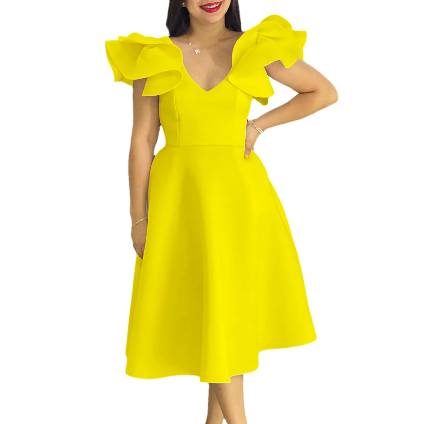 ZYHT 73571 Custom Elegant V-Neck Cape Sleeve Dresses Trendy Straight Yellow Maxi Party Gowns Modest Evening Dress for Women