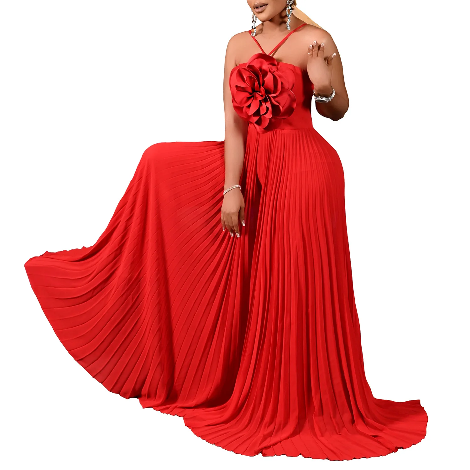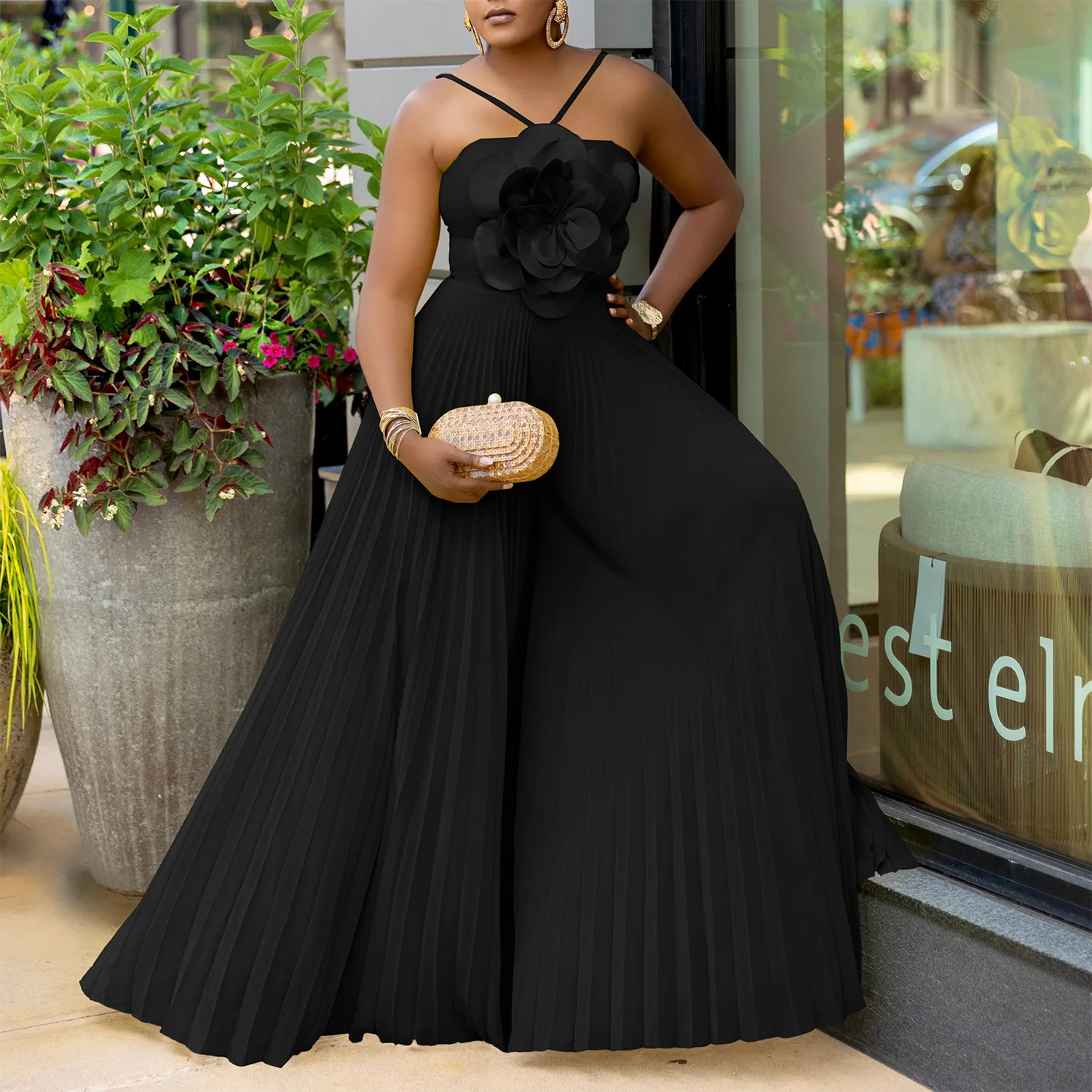Latest Design Summer Female Jumpsuit Women Halter Neck Three-Dimensional Flower Solid Color Wide Leg Jumpsuits for Ladies