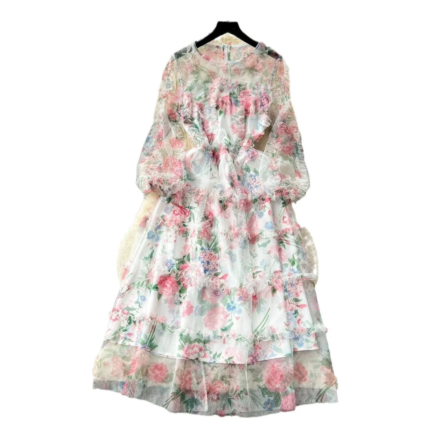 Casual Women's Tulle Splice Chest Wrap Open Back Hollow Out High Waist Party Elegant Sexy Dress