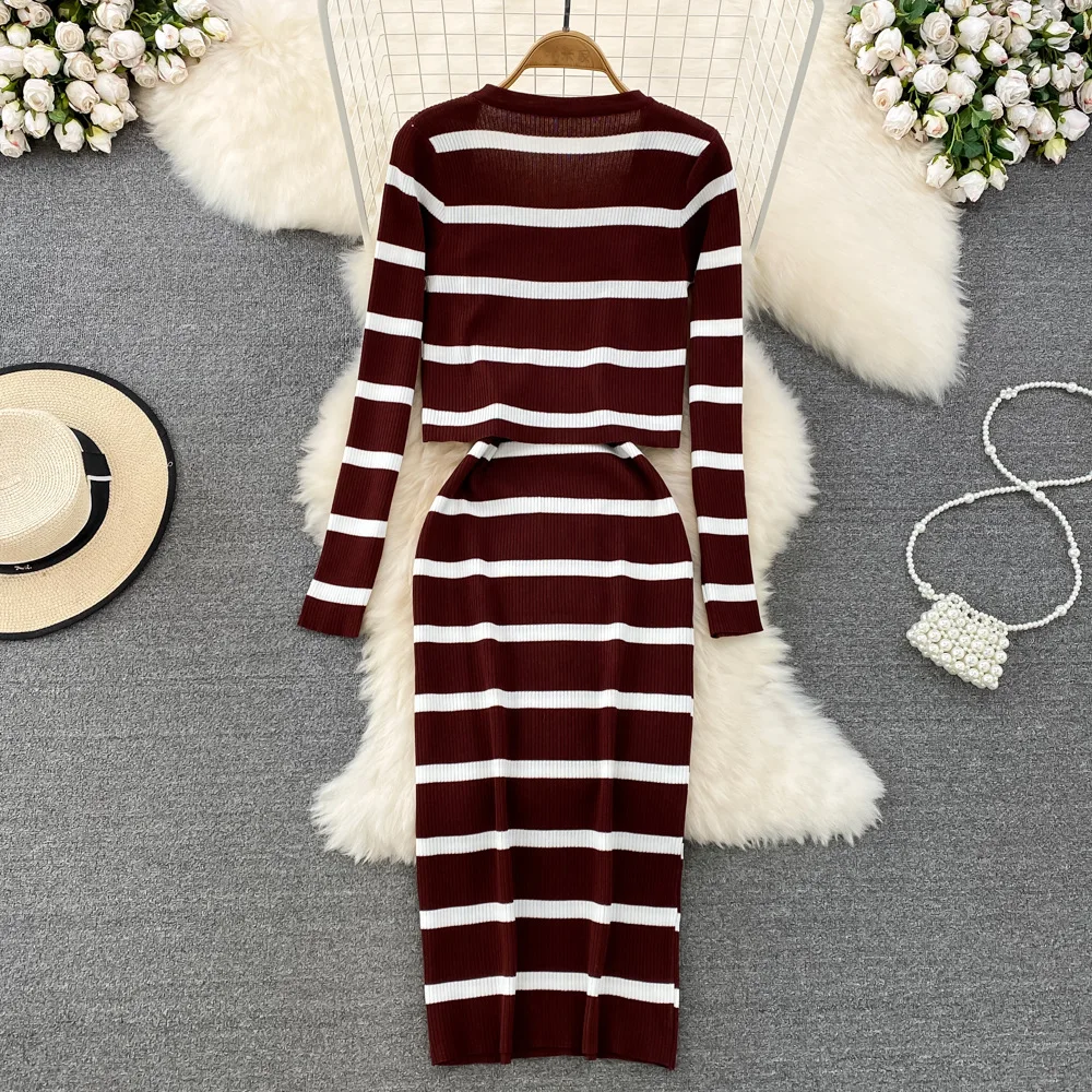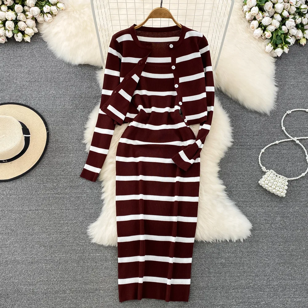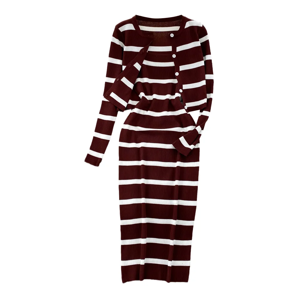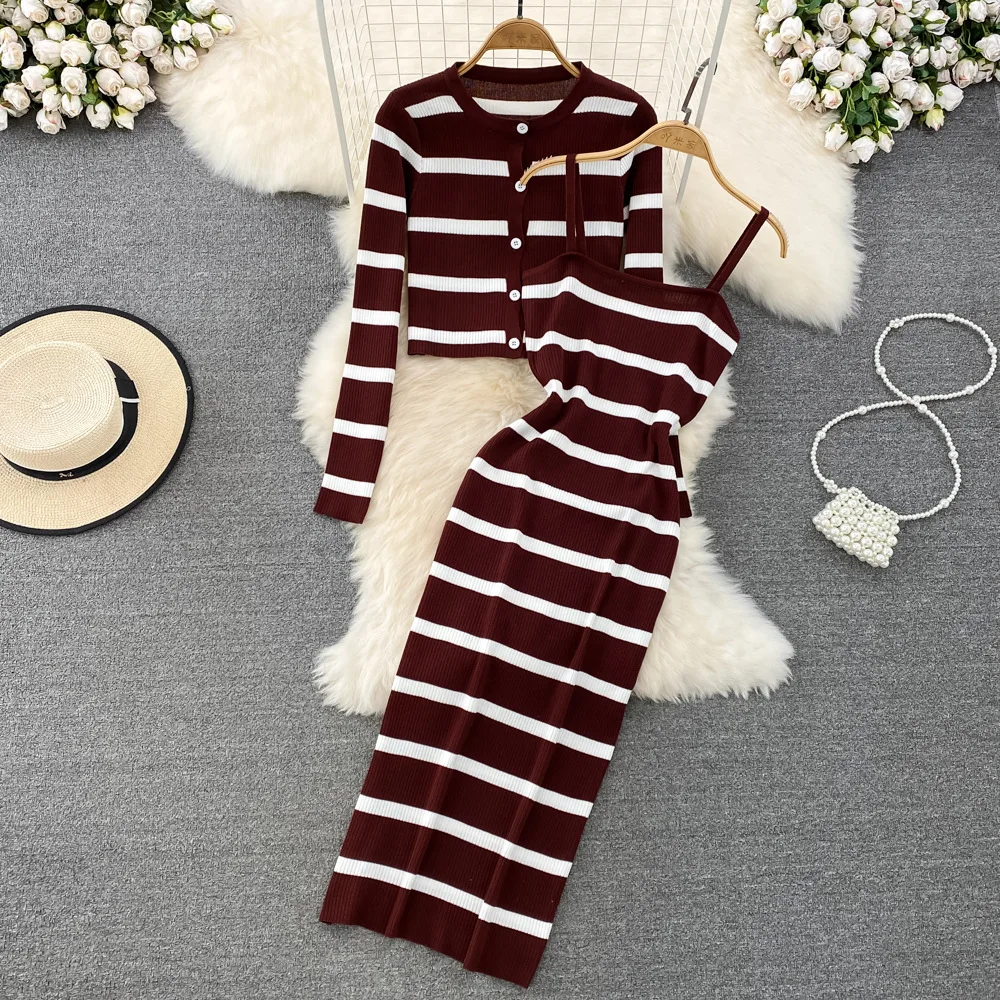 Long Sleeve Striped Spaghetti Slip Dress Summer Simple Knitting Dress Ladies Casual Dress Clothes Women Wholesale