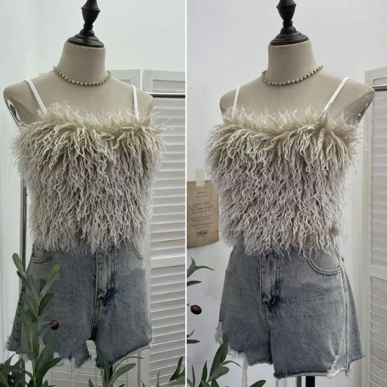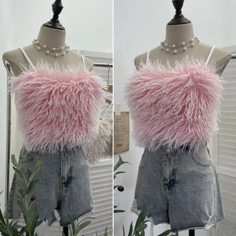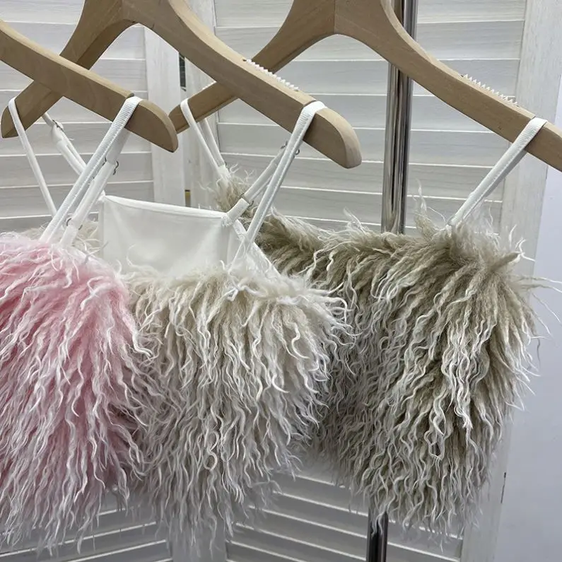 Dropshipping 2026 Winter Hot Selling Fashion Crop Top Furs Boutique Sexy Women Tank Tops