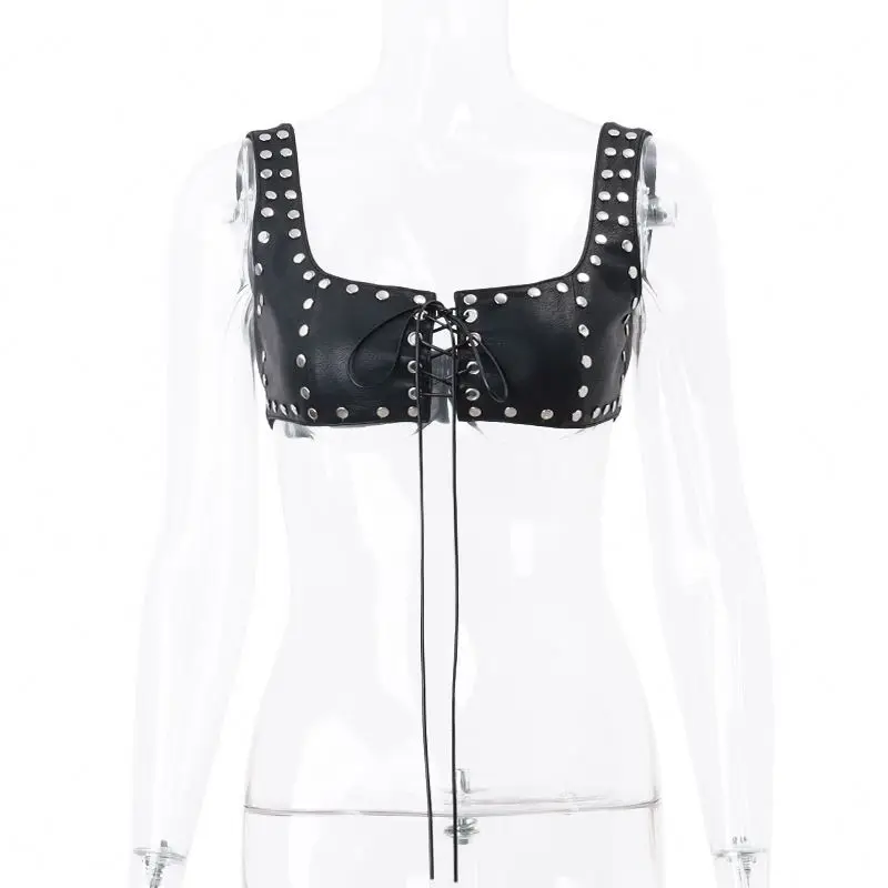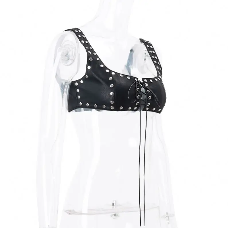 Dropshipping Wholesale Hot Sexy Fashion Leather Cool Girls Sexy Popular Women Tank Tops