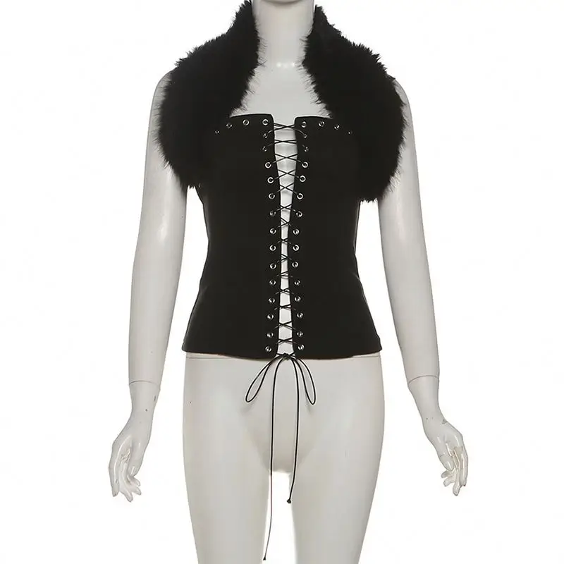 Dropshipping 2026 Wholesale Hot Sexy Fashion Furs Lace up Sexy Girls Popular Women Tank Tops
