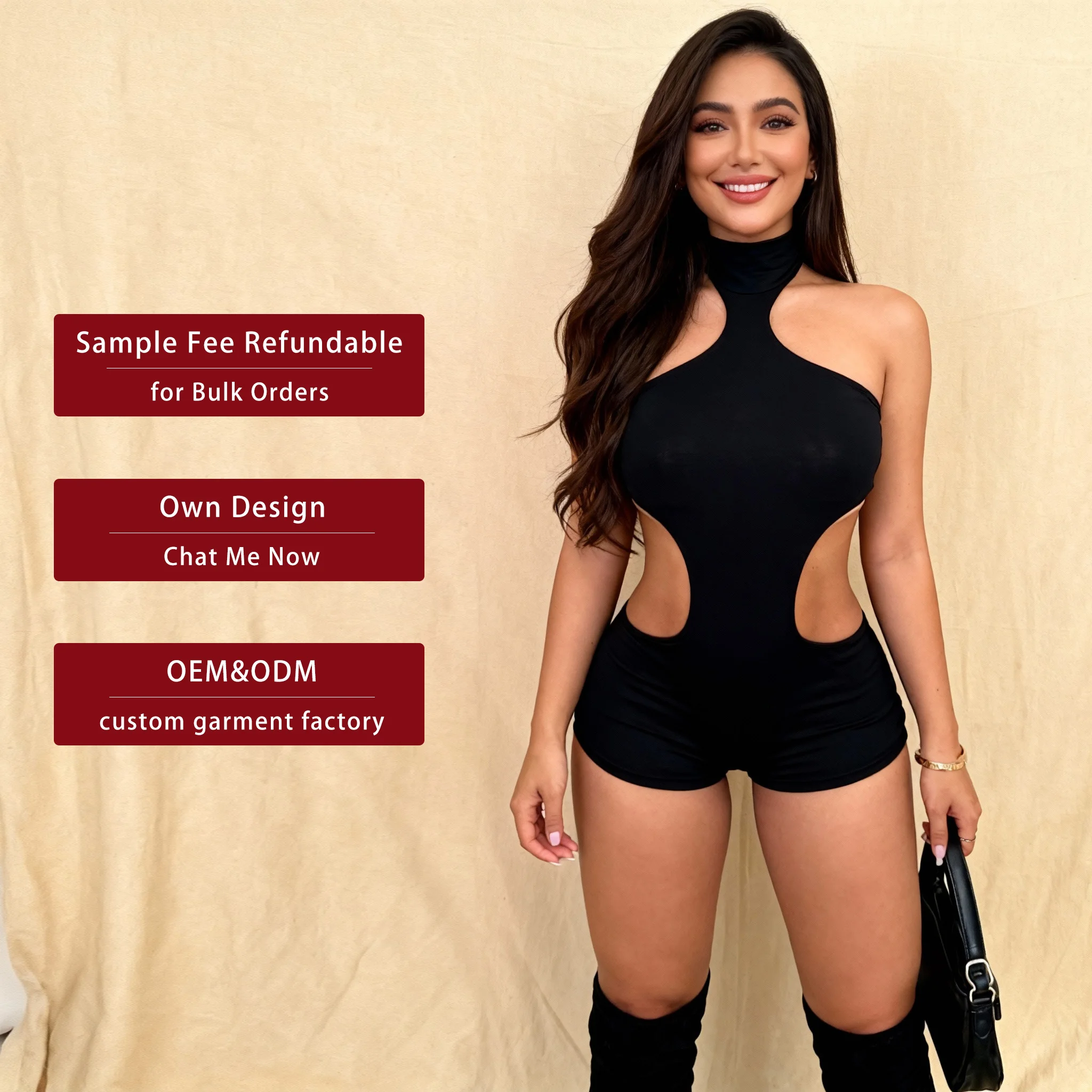 New Spring Sexy Stretch Backless Halter Slim One Piece Black Romper Short Jumpsuit Bodysuit