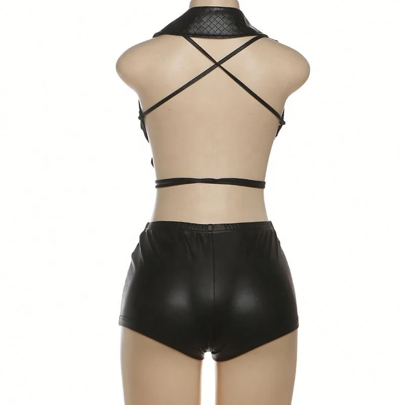 Dropshipping Wholesale New Arrivals Popular 2026 Women Clothing Pu Leather Hot Sexy 2 Piece Shorts Set