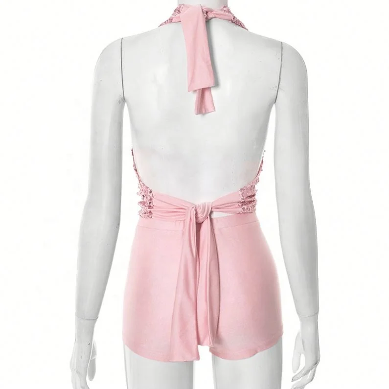 Dropshipping 2026 Wholesale Clothing Club WearTwo Piece Sequined Tank Top Women's Shorts Sets