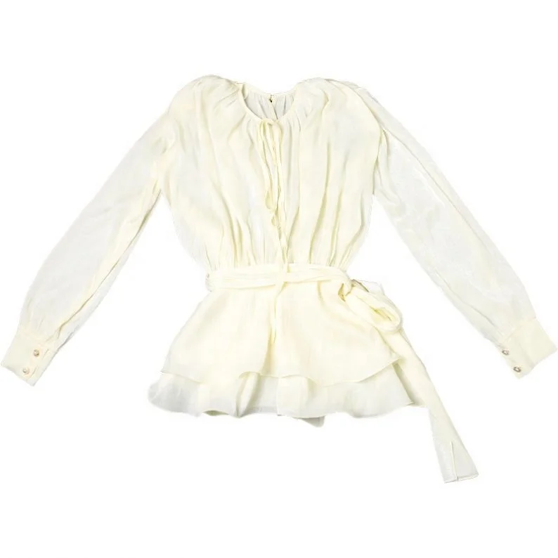 ZYHT 82024 White Blouse with Ruffled Cap Sleeves V-Neck Blouses Et Chemises Pour Femmes White Blouses for Women