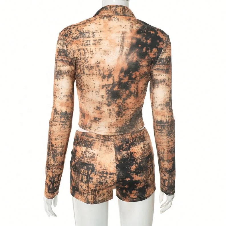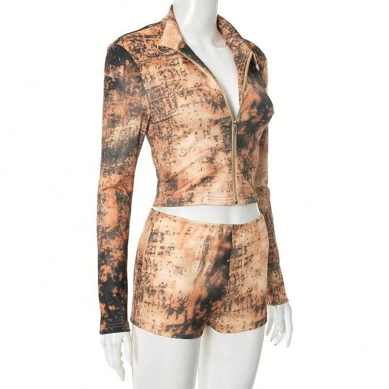 Dropshipping 2026 Wholesale Fall Autumn Two Piece Digital Printed Jackets Women's Shorts Sets