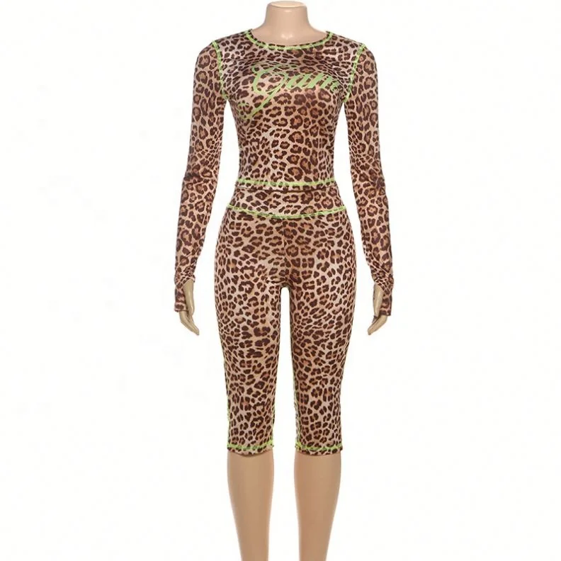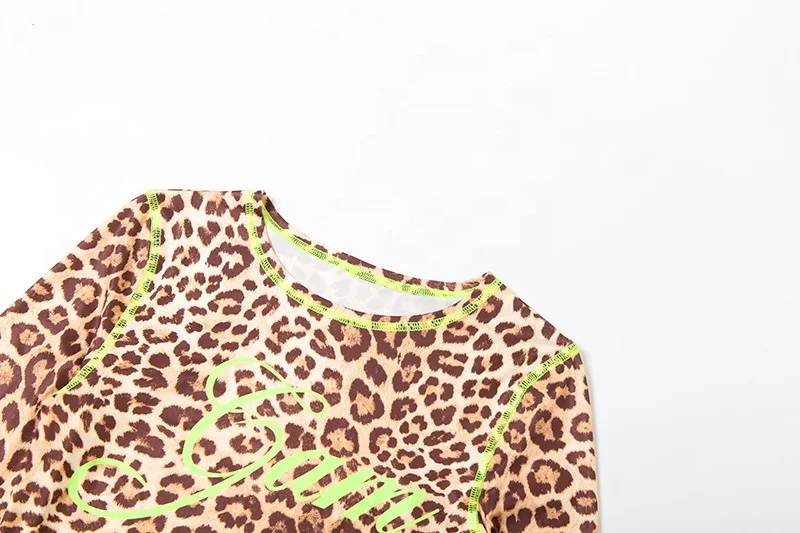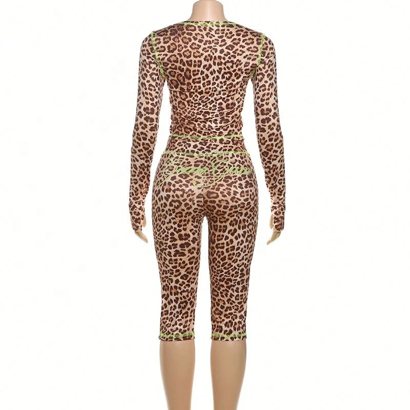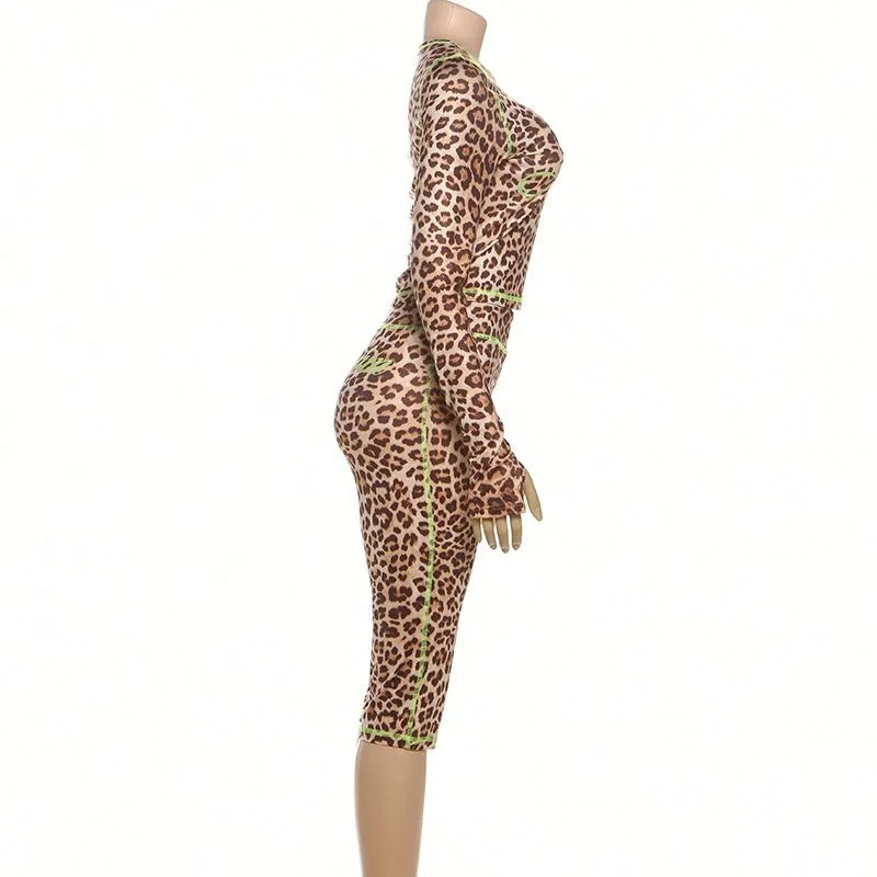 Dropshipping New Arrivals Popular 2026 Women Clothing Long Sleeve Leopard Print Two Piece Midi Set