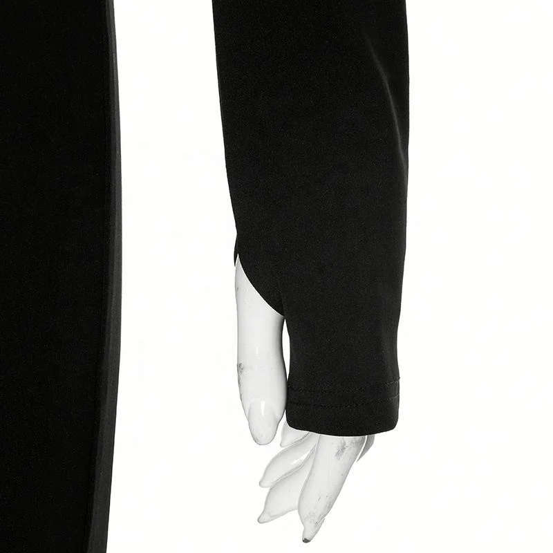 ZYHT 35239 Women's Elegant Black Velvet Blazer with White Ruffled Trim Peplum Hem & Long Puff Sleeves Chic Formal Jacket
