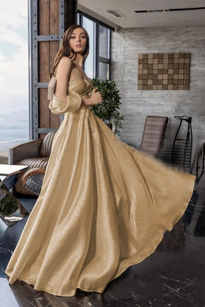 ZYHT 73571 Custom Elegant V-Neck Cape Sleeve Dresses Trendy Straight Yellow Maxi Party Gowns Modest Evening Dress for Women