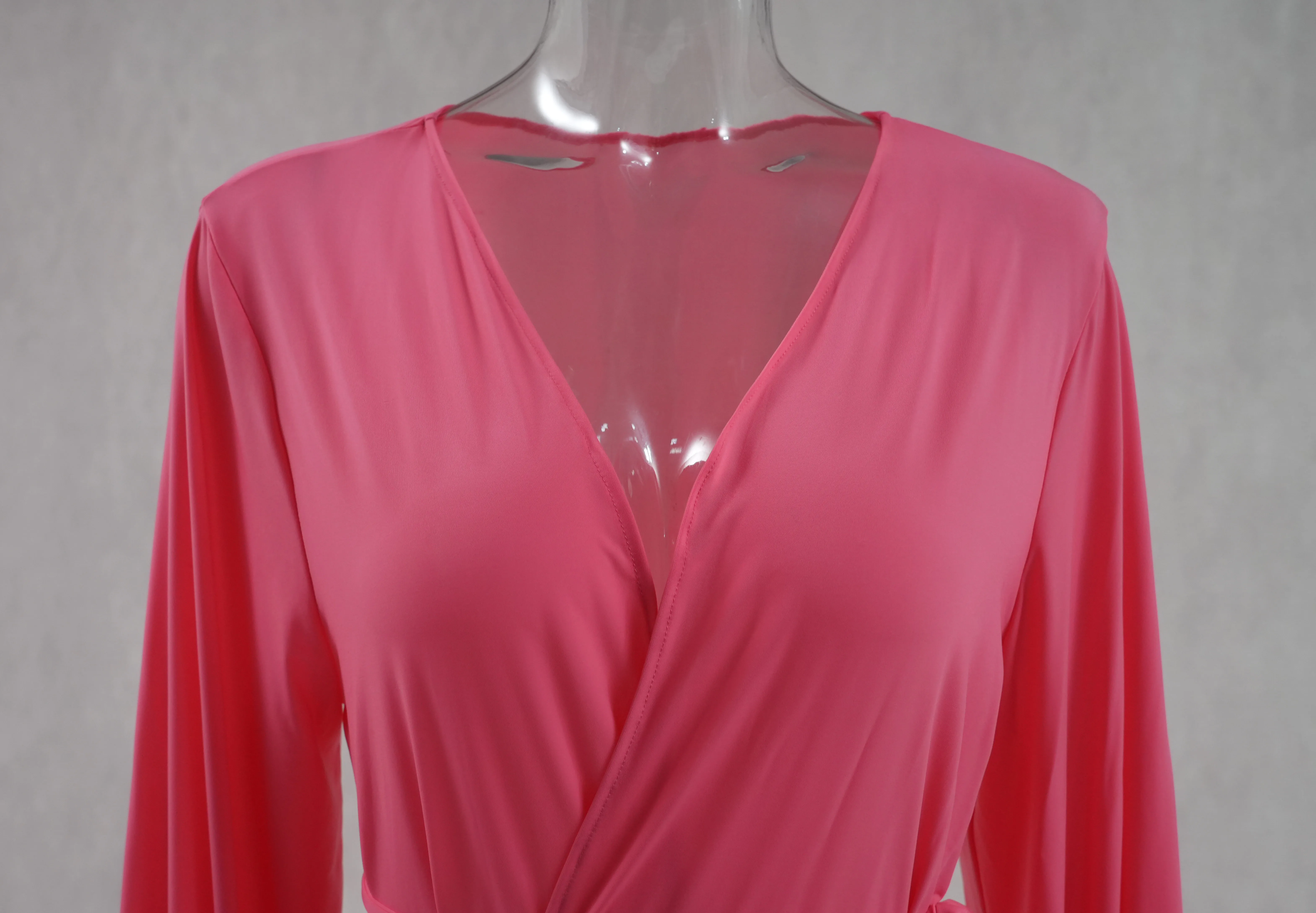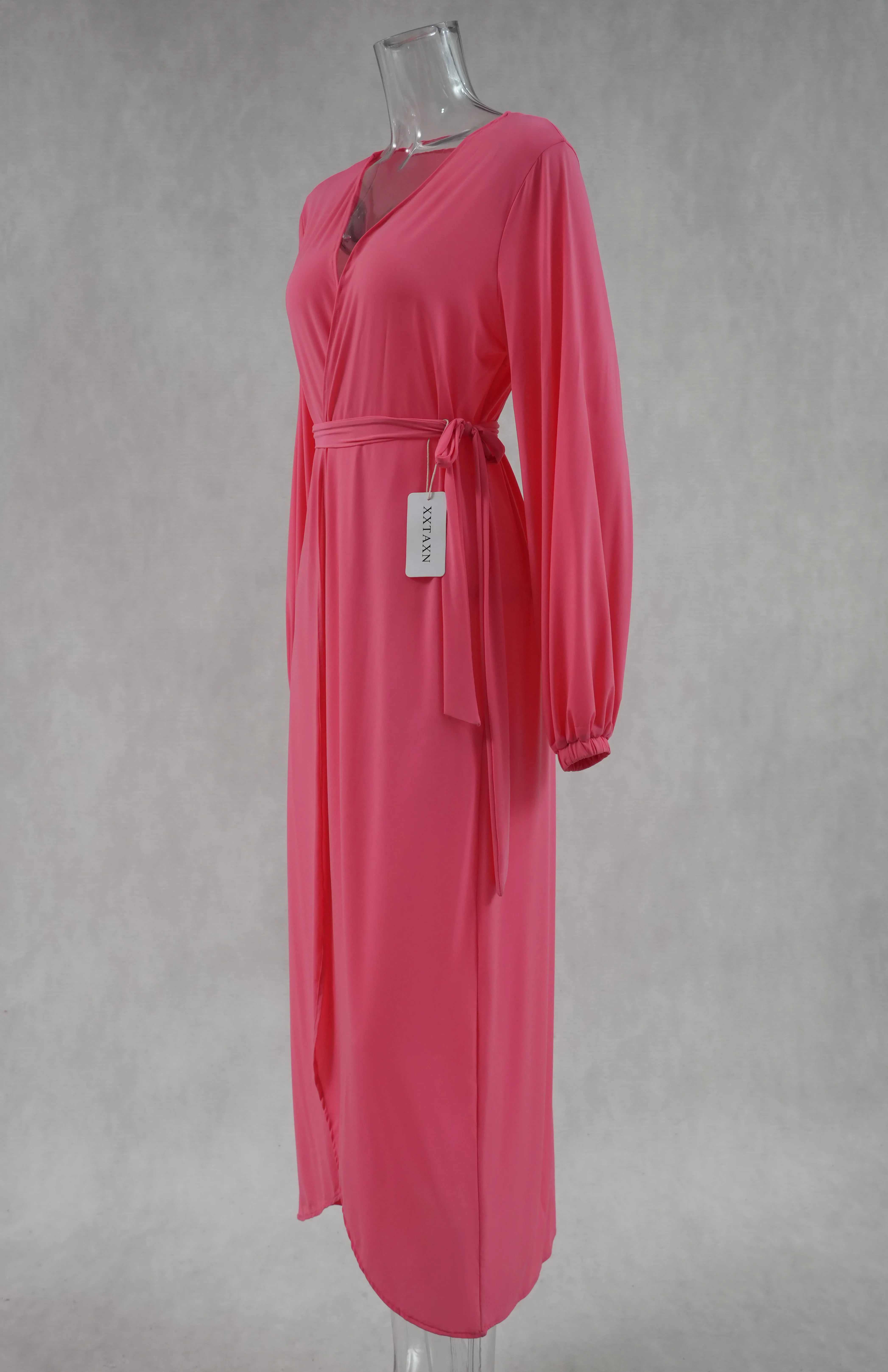 Hot Sale XXTAXN Beachwear Long Sleeve v Neck Waist Hugging Long Casual Dress