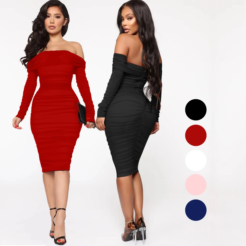 ZYHT 73849 European Wholesale Fashion Casual One Shoulder Ruched Maxi Dress Side Slit Pleated Long Sleeve Dresses for Women