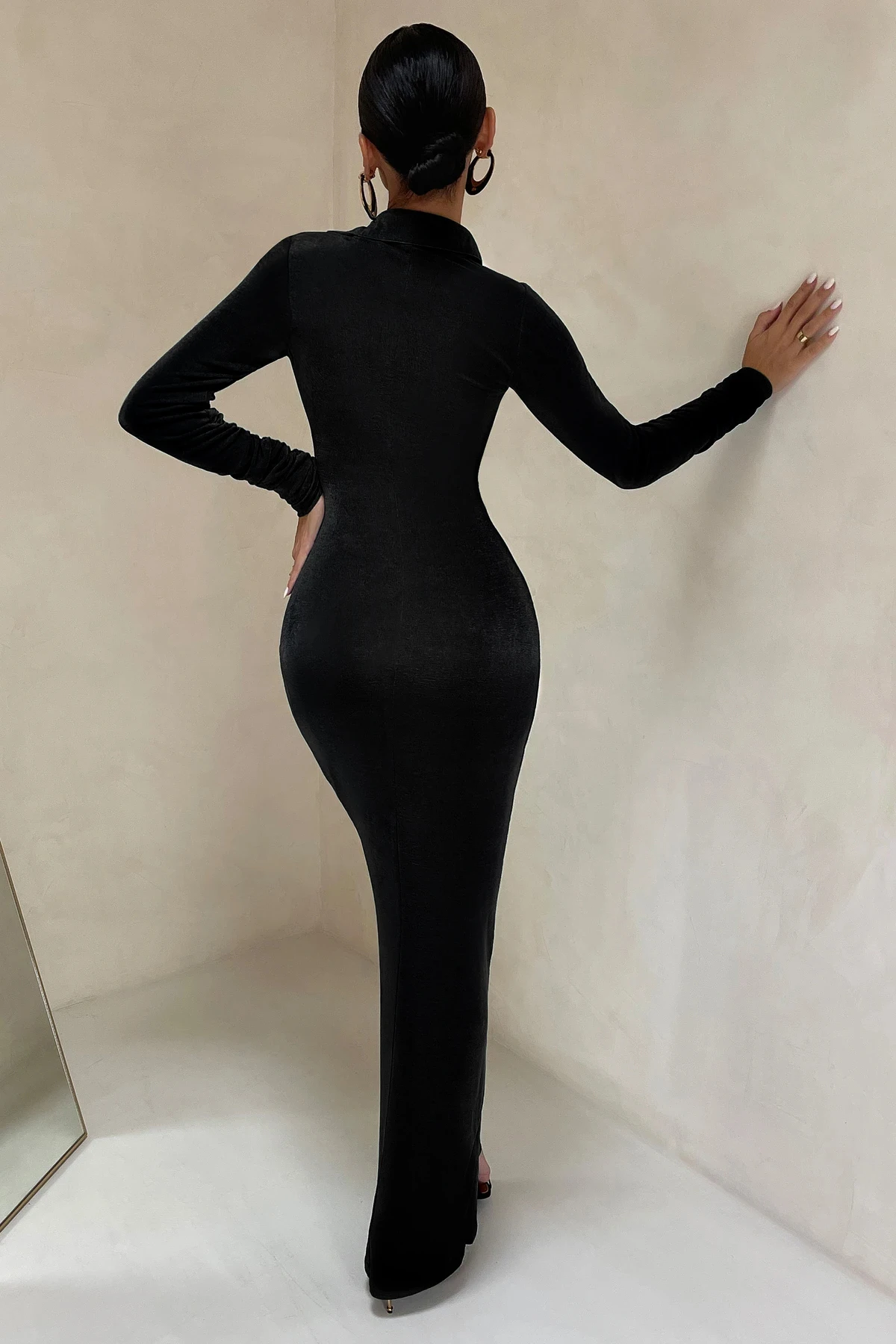 ZYHT 21541 Wholesale Crew Neck High Waist Casual Dresses Elegant Lace Velvet Mermaid Hem Ruched Long Sleeve Dresses for Women