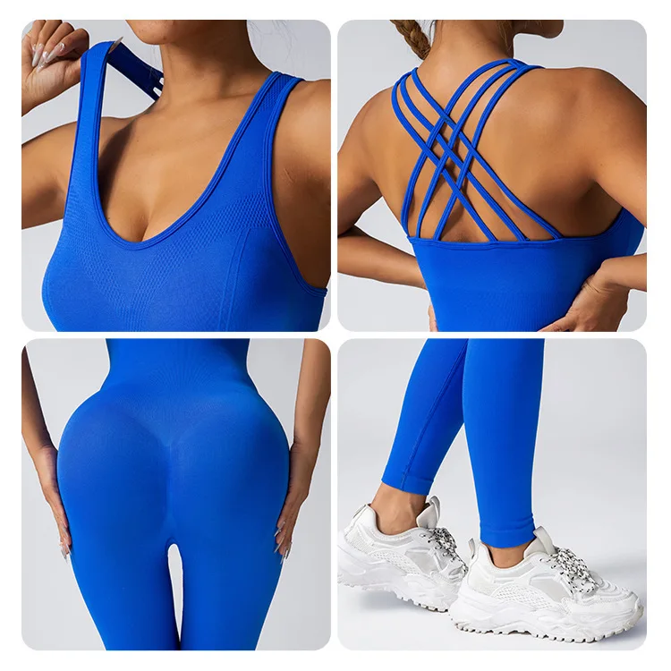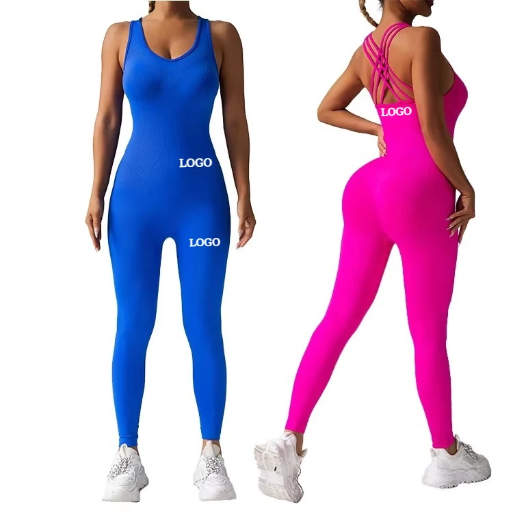 Women's Crisscross Back Yoga Jumpsuit - Sexy Butt Lifting Tight Bodysuit, Built-in Bra, Custom Logo Available