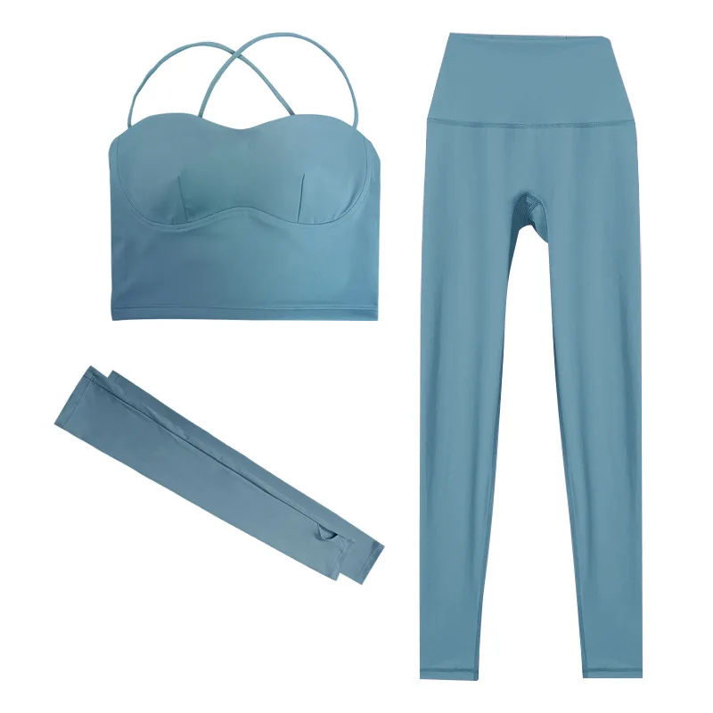 Women's Sexy Crisscross Yoga 3-Piece Set Spring Summer Camisole Leggings & Sleeves High Elastic Pilates Gym Workout Activewear