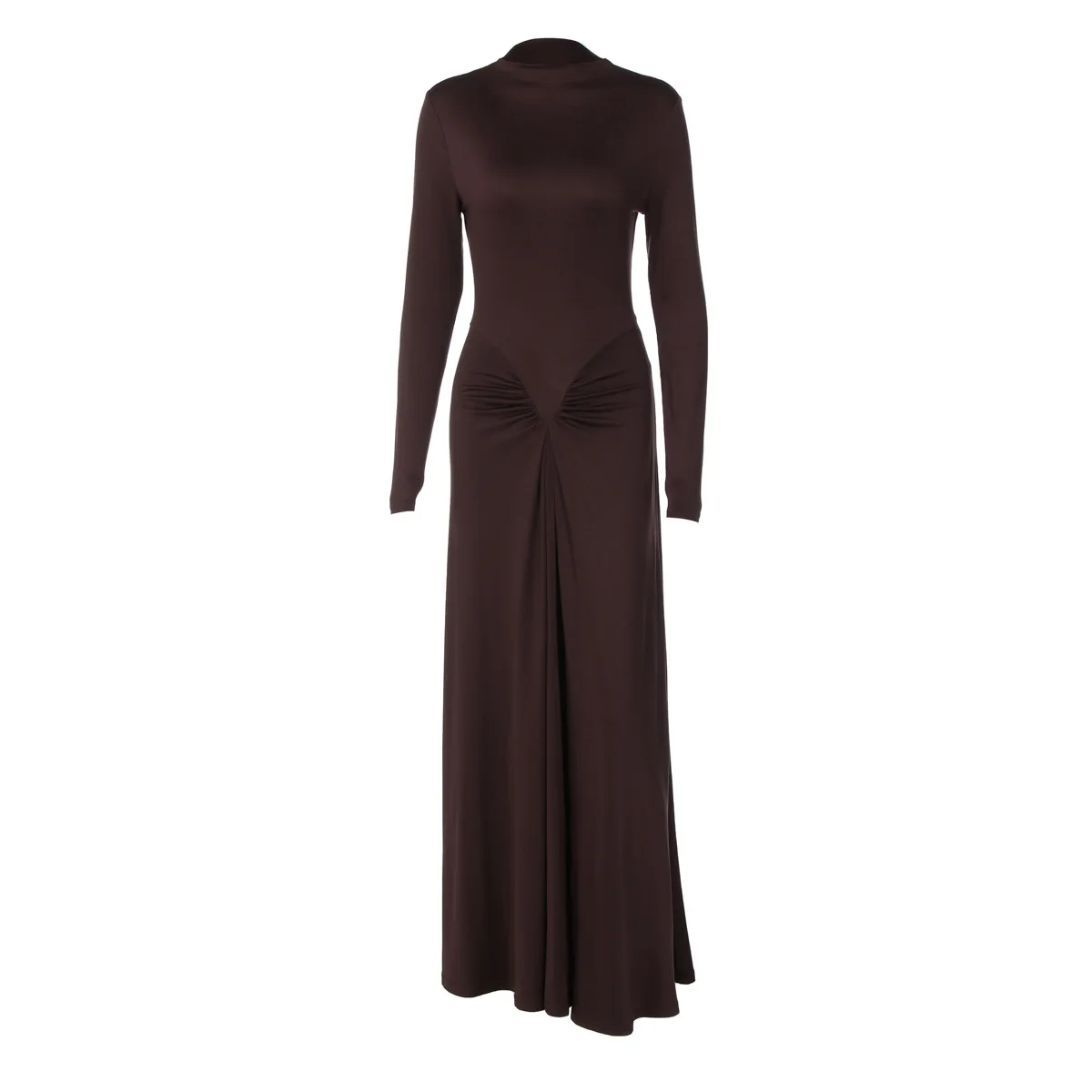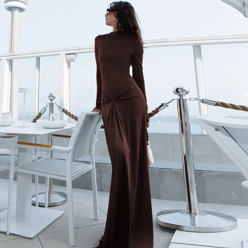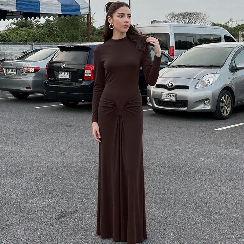 Slimming Fitting Beautiful Dress for Women Long Sleeved Coffee Western Dresses Frill Maxi Vestidos Clothing