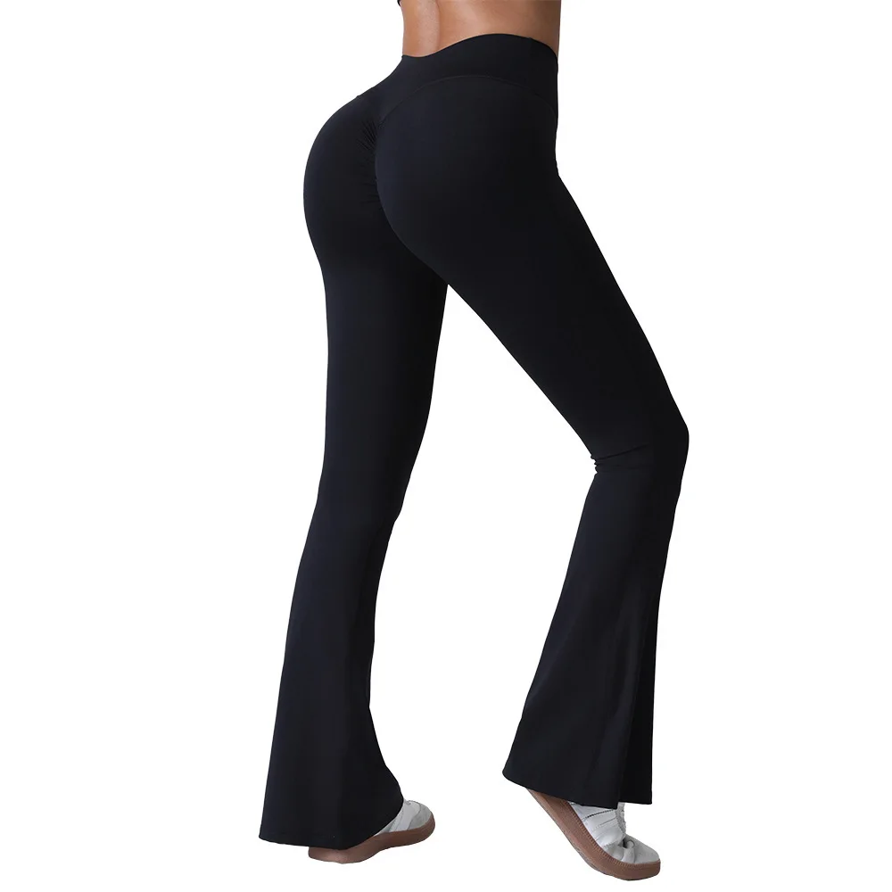 Custom Logo Yoga Leggings High Waisted Sports Running Training Gym Yoga Long Pants Women Flare Trousers