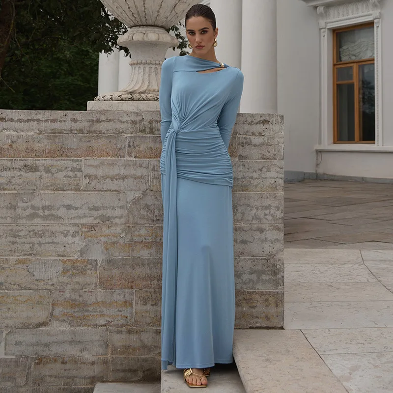 Slim Fit Draped Long Dress Long Sleeve Irregular Women Casual Dress