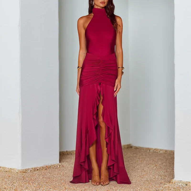 Evening Long Skirt Backless Split Sexy Dress Neck Hanging Women's Party Dress