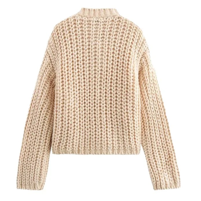 Loose Women's Sweaters Coarse Needle Pocket Button Knit Cardigan Long Sleeved Sweater Jacket